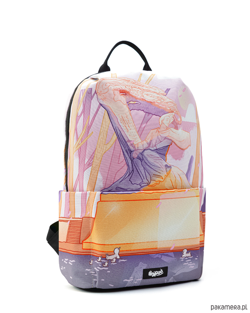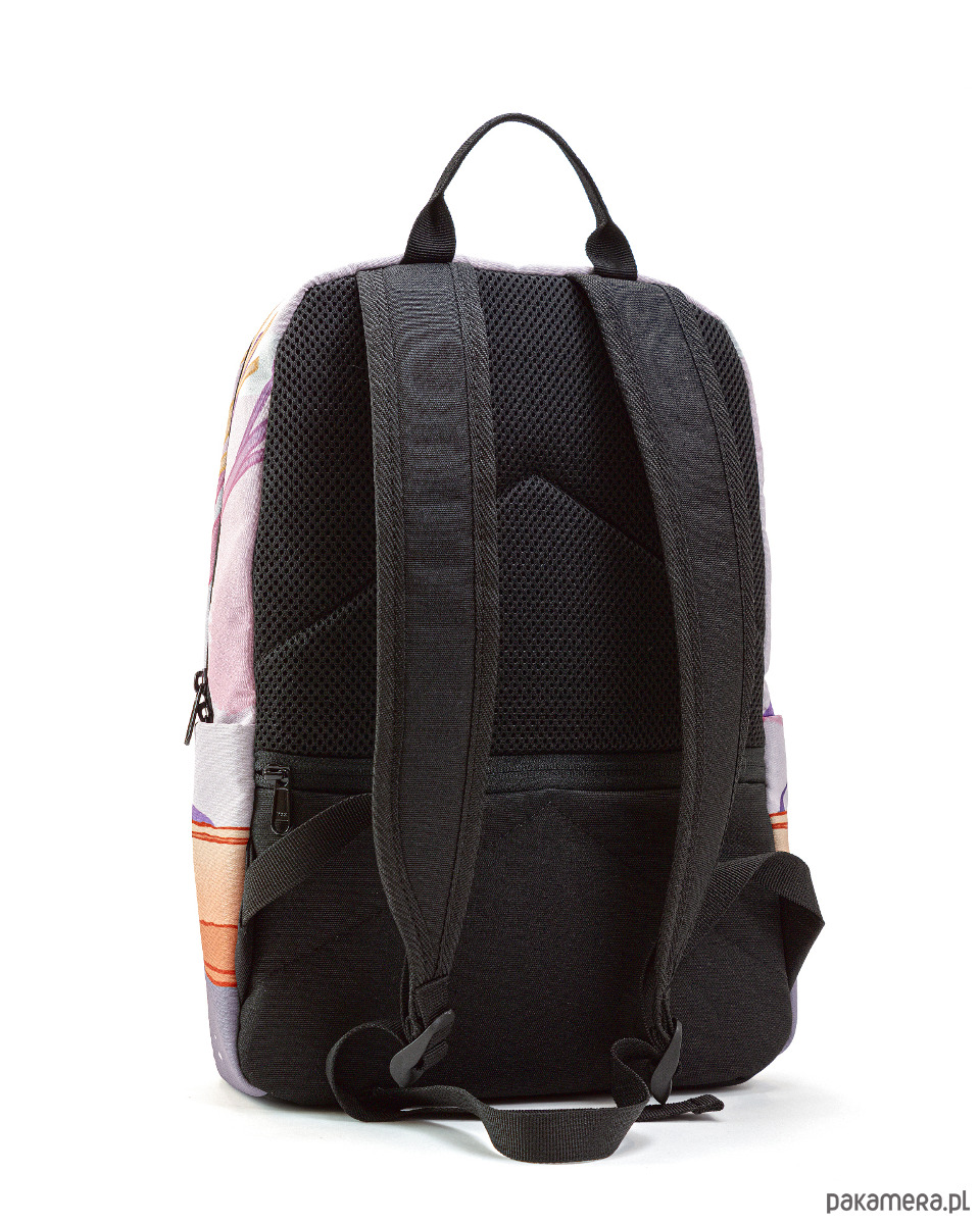Plecak posiada dwie kieszonkę zapinane na zamek (z przodu i z tyłu).