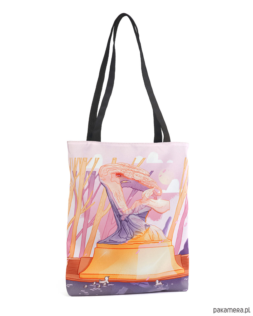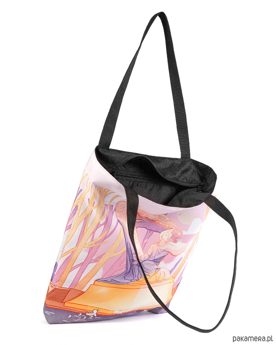 Wewnątrz znajduje się kieszeń zapinana na zamek, rączki wzmocnione paskiem.