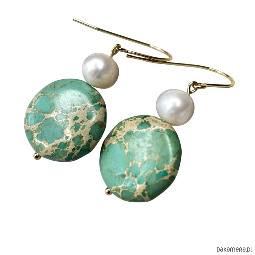 Materiał: perły naturalne hodowlane, jaspis cesarski, pozłacana stal chirurgiczna