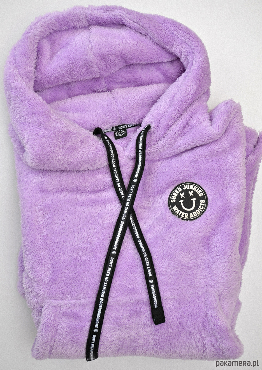Biggy Smile Lilac to przeciwstresowe poncho, które jest jak pocisk z dopaminą. Zakładasz i trafiona zatopiona. Toniesz i za diabła nie chcesz wyjść na powierzchnię.
