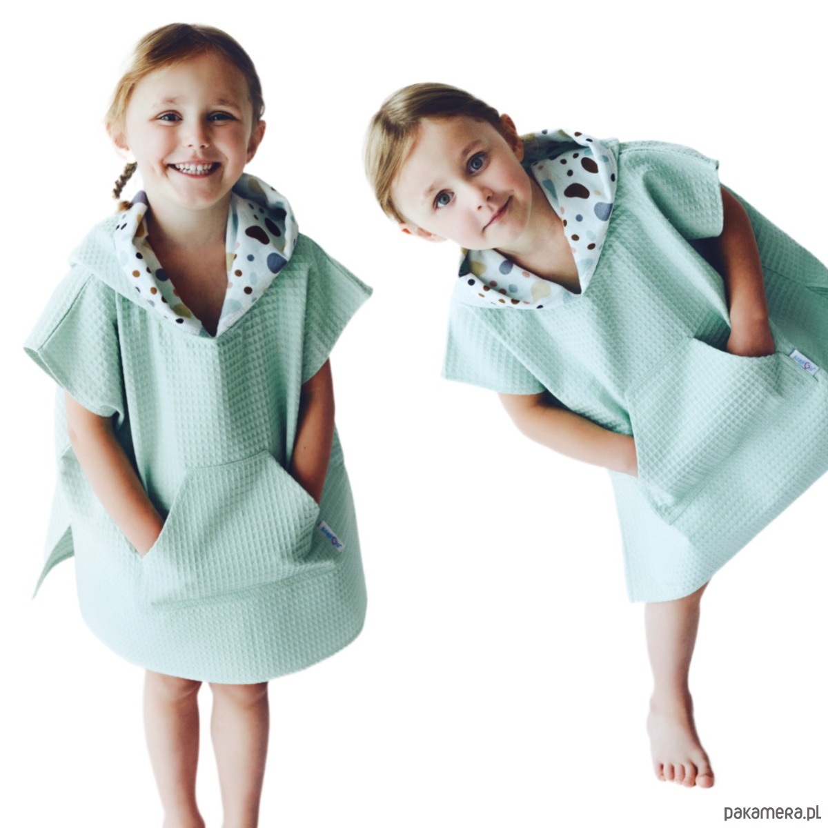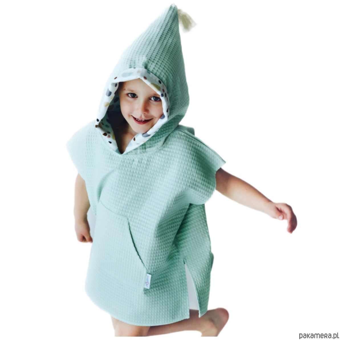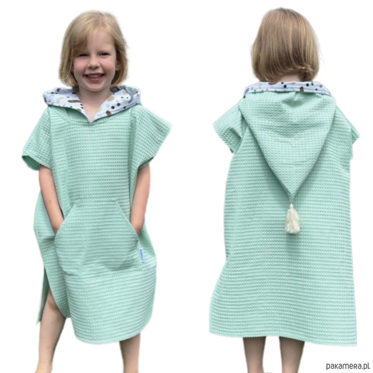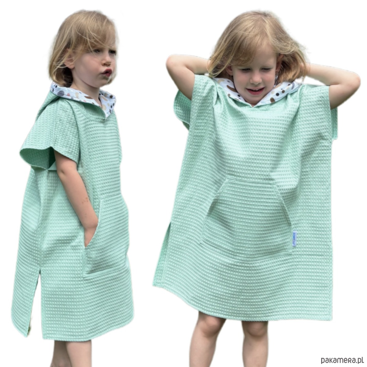 Nasze ponczo to coś więcej niż tylko okrycie po kąpieli – to miękki, ciepły kokon, który otula Twoje dziecko z troską i czułością. Wchłania wodę dużo lepiej niż klasyczne ręczniki frotte, schnie błyskawicznie, zatrzymując ciepło, kiedy najbardziej tego potrzeba. Jest lekkie jak chmurka i na tyle kompaktowe, że bez trudu zmieści się nawet do małego plecaka. Kapturek zadba o mokrą główkę, a urocza kieszonka z przodu pomieści wszystkie małe skarby z plaży – muszelki, kamyczki i inne dziecięce znaleziska.