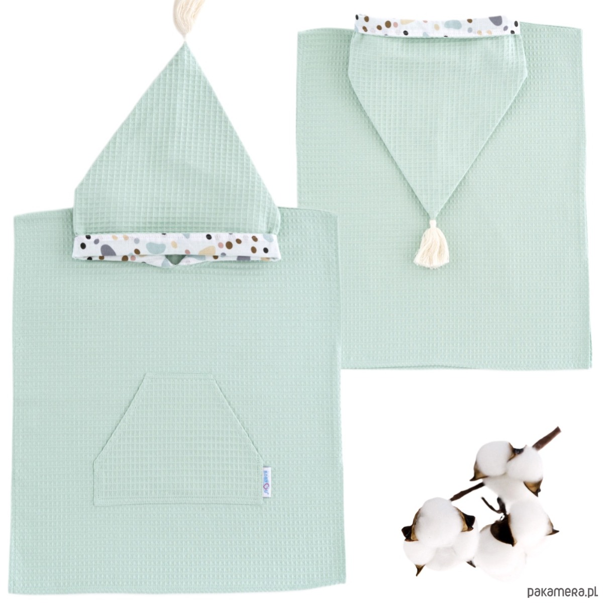 Ponczo Kąpielowe Bawełniane z Kapturem Muślinowym MINT od BabyU