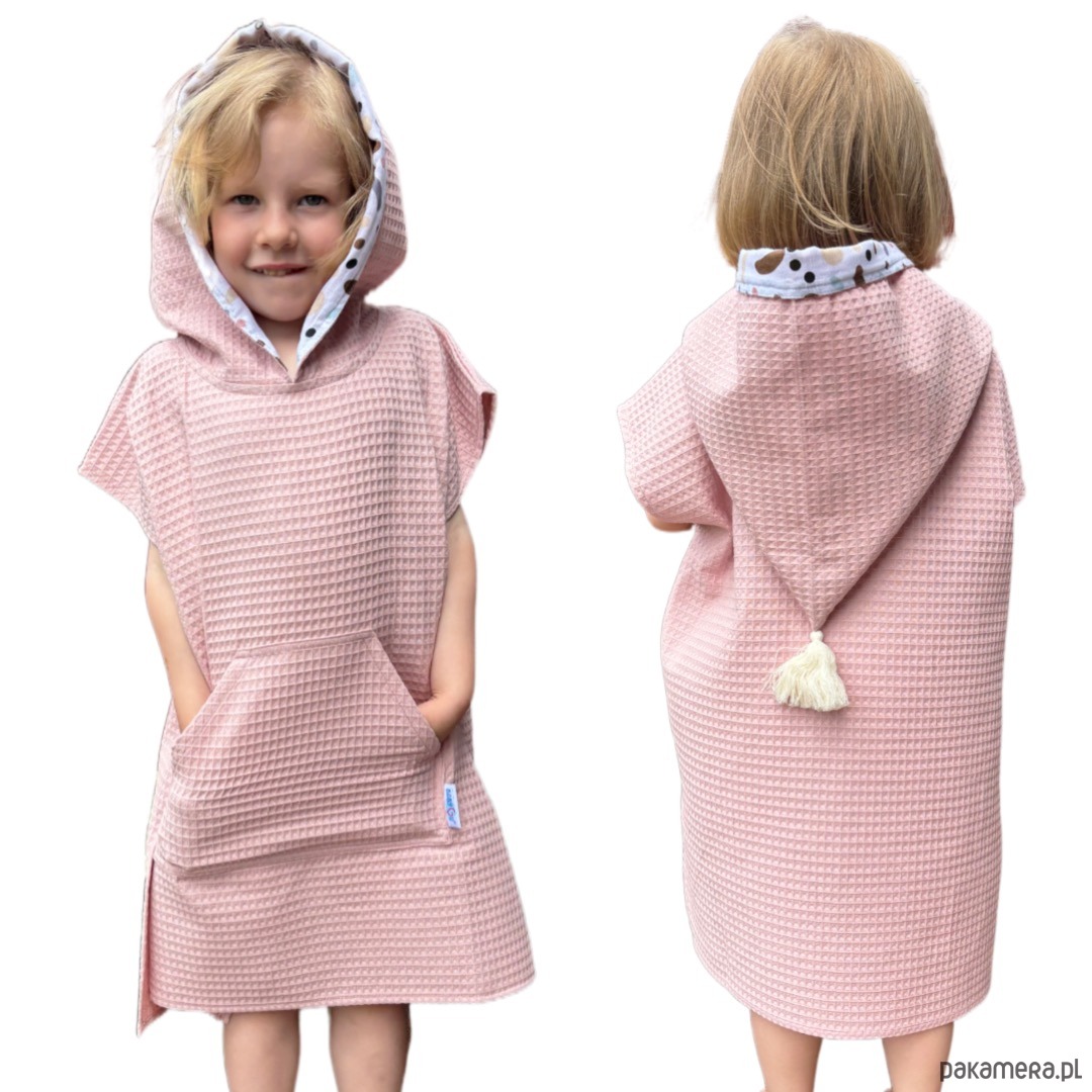Nasze ponczo to coś więcej niż tylko okrycie po kąpieli – to miękki, ciepły kokon, który otula Twoje dziecko z troską i czułością. Wchłania wodę dużo lepiej niż klasyczne ręczniki frotte, schnie błyskawicznie, zatrzymując ciepło, kiedy najbardziej tego potrzeba. Jest lekkie jak chmurka i na tyle kompaktowe, że bez trudu zmieści się nawet do małego plecaka. Kapturek zadba o mokrą główkę, a urocza kieszonka z przodu pomieści wszystkie małe skarby z plaży – muszelki, kamyczki i inne dziecięce znaleziska.