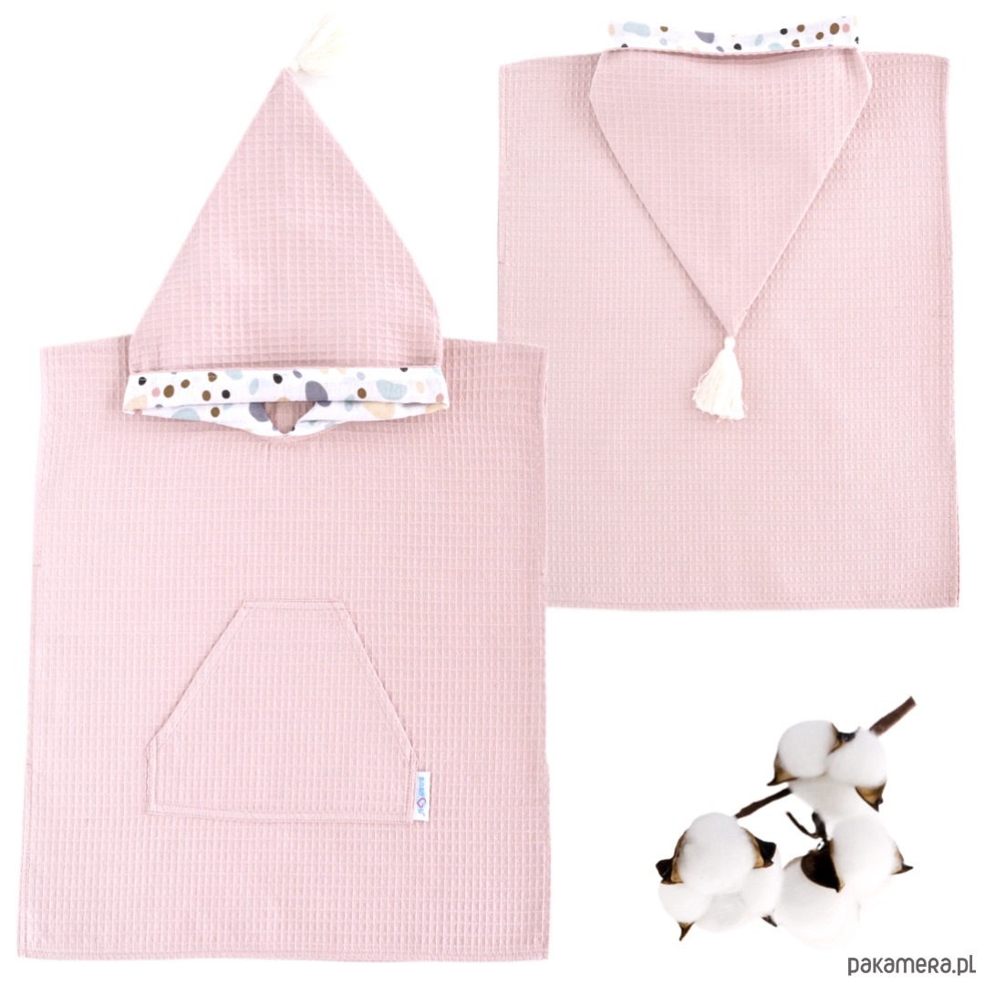 Ponczo Kąpielowe Bawełniane z Kapturem Muślinowym PINK od BabyU
