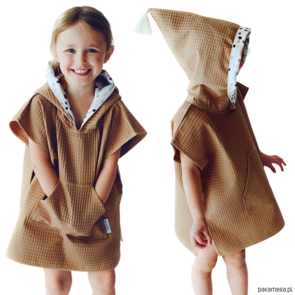 Ponczo Kąpielowe Bawełniane z Kapturem Muślinowym TOFFEE od BabyU