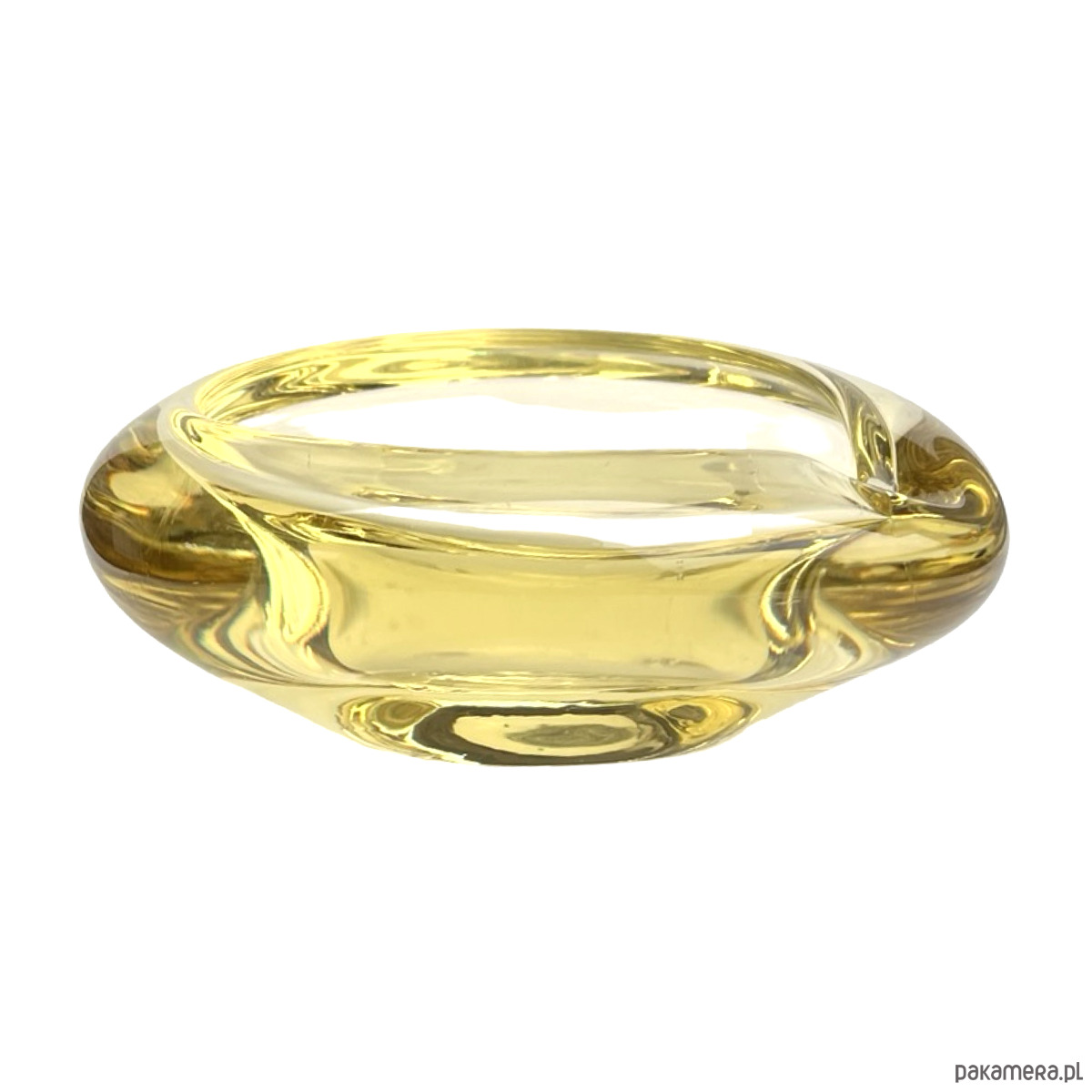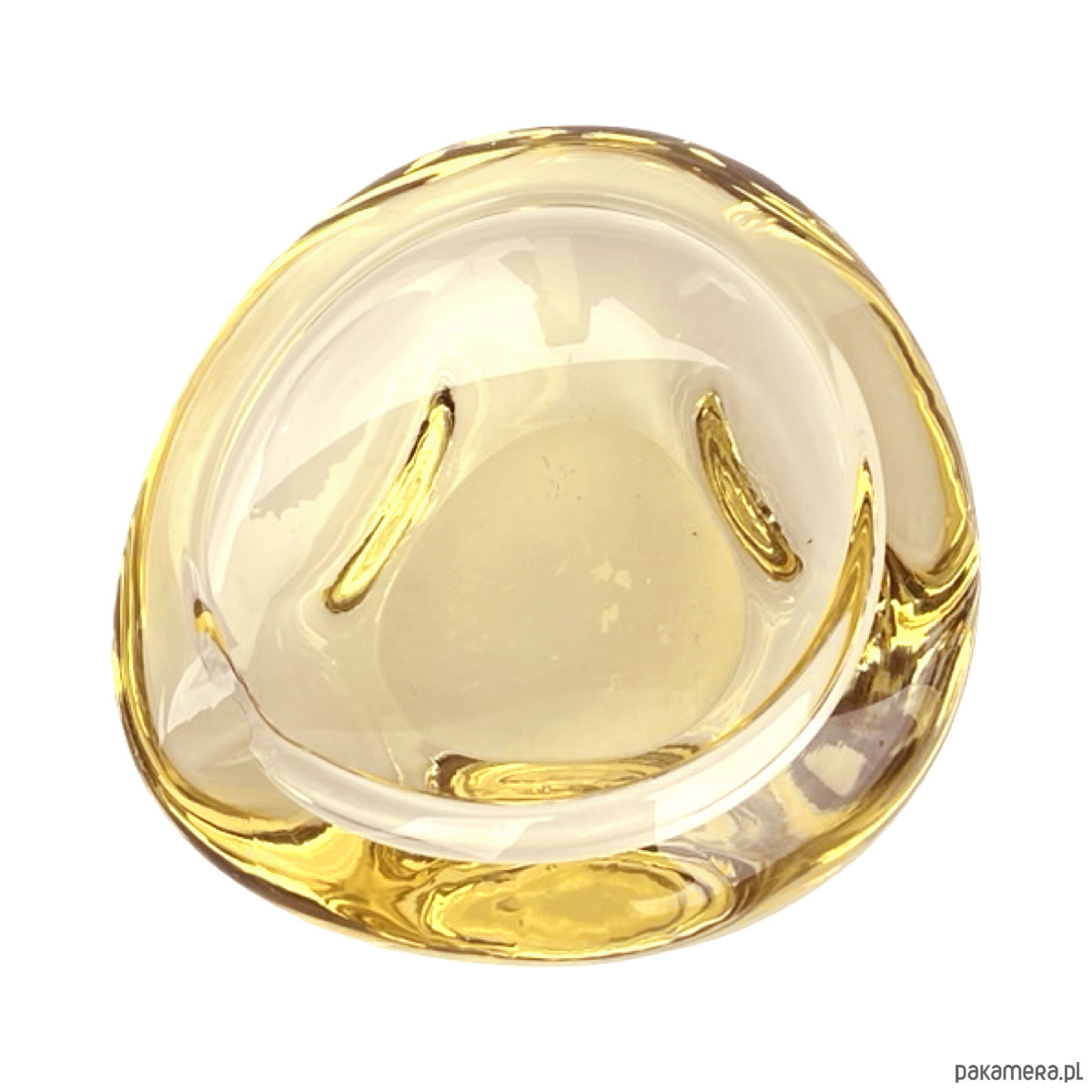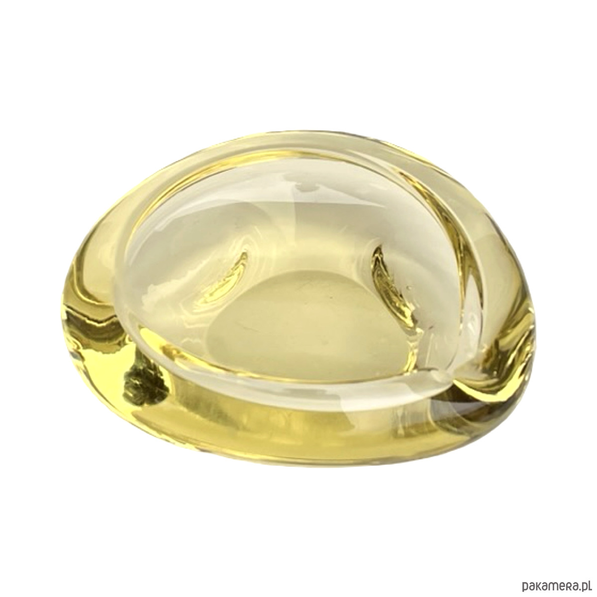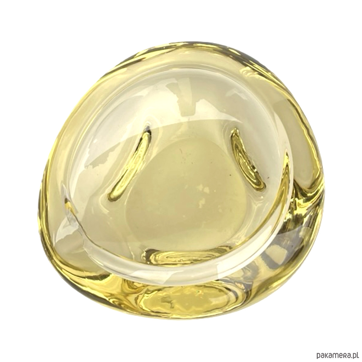 Wyjątkowa popielnica artystyczna projektu Miloslava Klingera dla Železný Brod Sklo z lat 60. XX wieku. Wykonana ręcznie z grubego szkła o pięknym, jasnożółtym odcieniu. Charakterystyczna organiczna forma z płynnymi liniami i dynamicznymi załamaniami światła to znak rozpoznawczy czeskiego designu tamtej epoki.