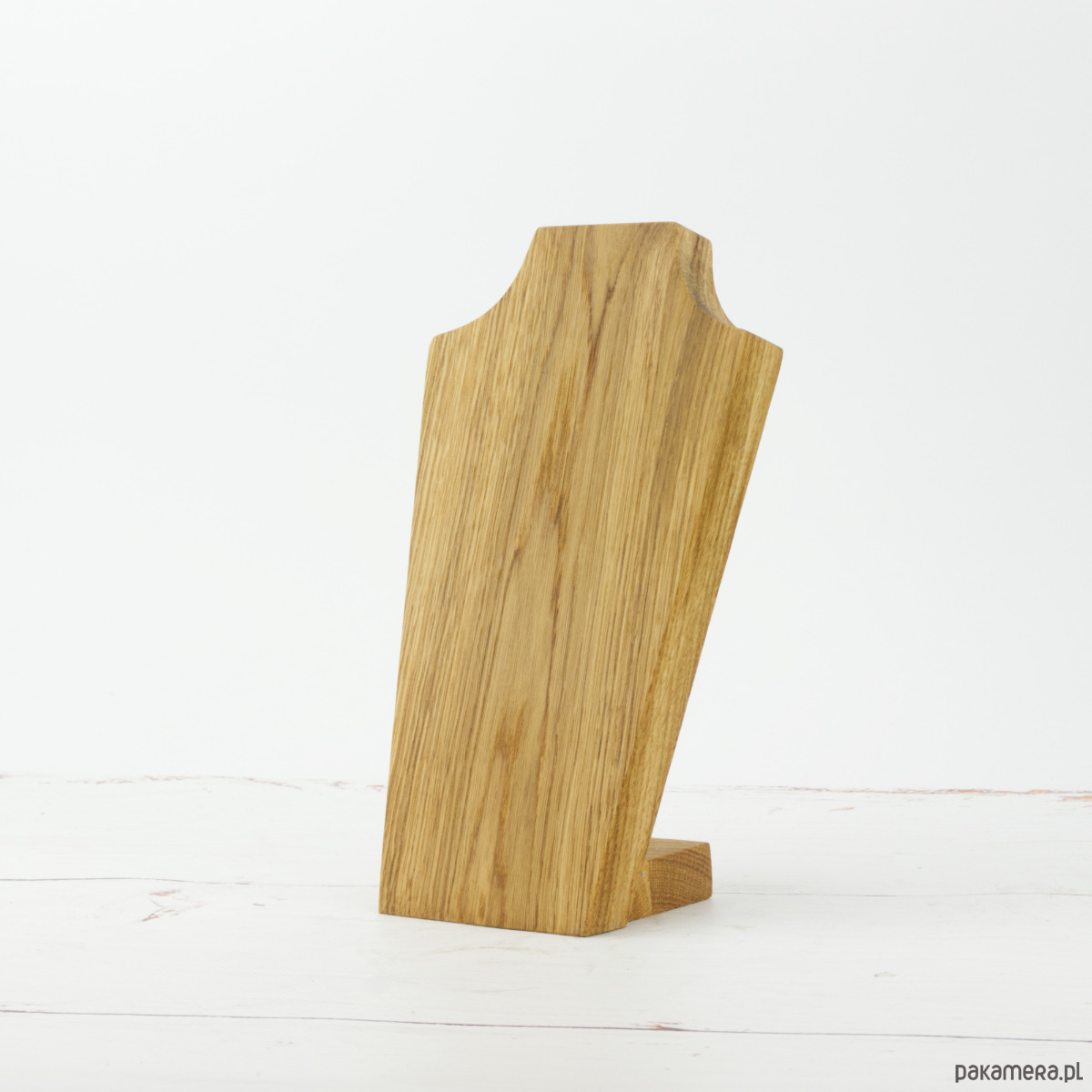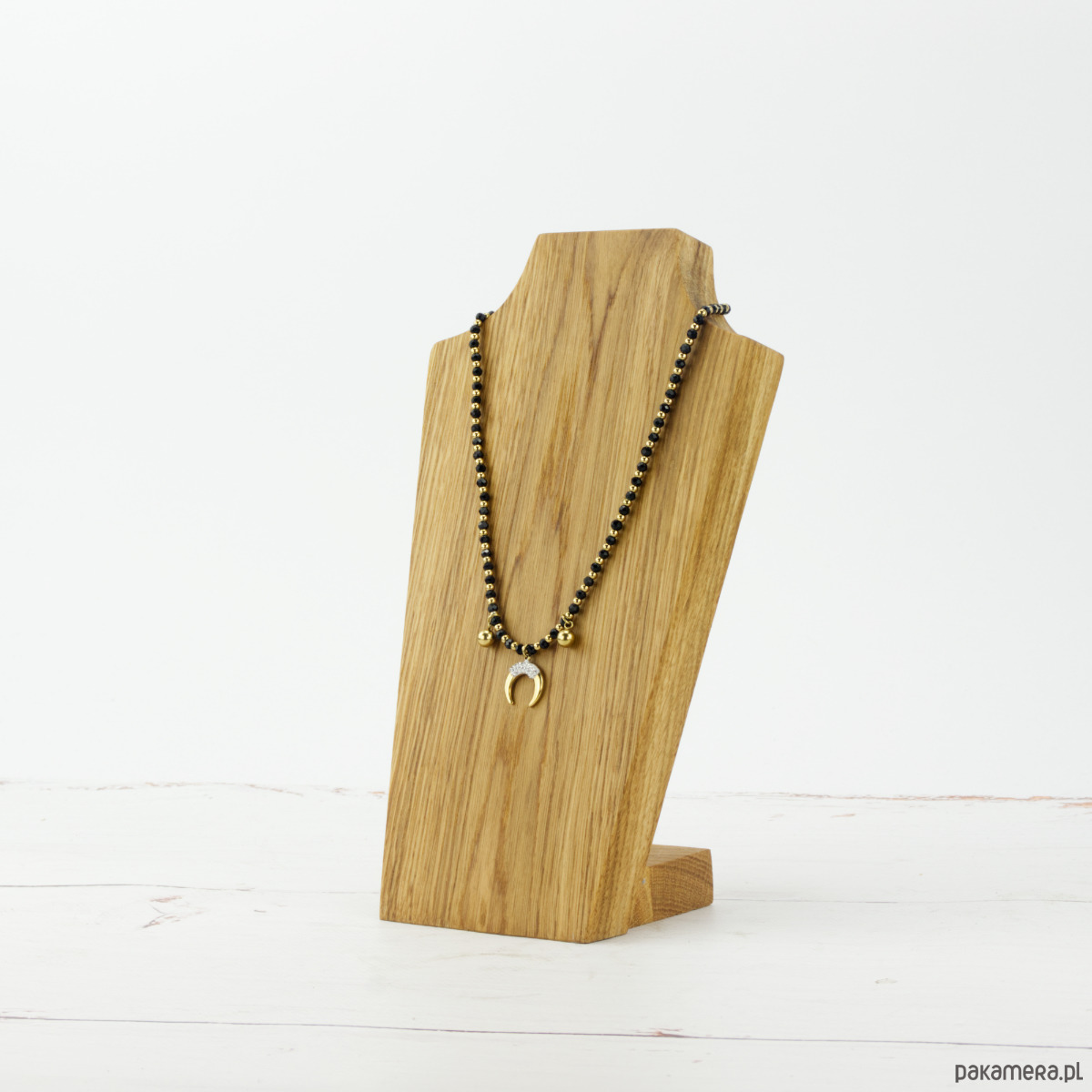 Wytworne popiersie Herma, które z łatwością pełni funkcję stylowego stojaka na naszyjniki to idealny dodatek do garderoby, sklepu jubilerskiego lub sesji zdjęciowej z biżuterią. Drewno dębowe charakteryzuje się wysoką odpornością na uszkodzenia mechaniczne. Smukła sylwetka popiersia oraz naturalna kolorystyka sprawiają, że eksponowana biżuteria wygląda niezwykle atrakcyjnie.
