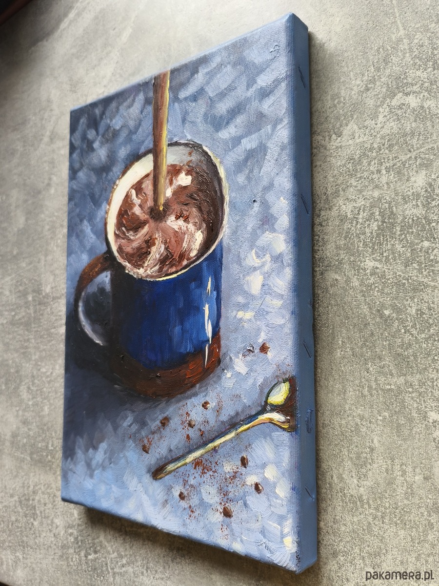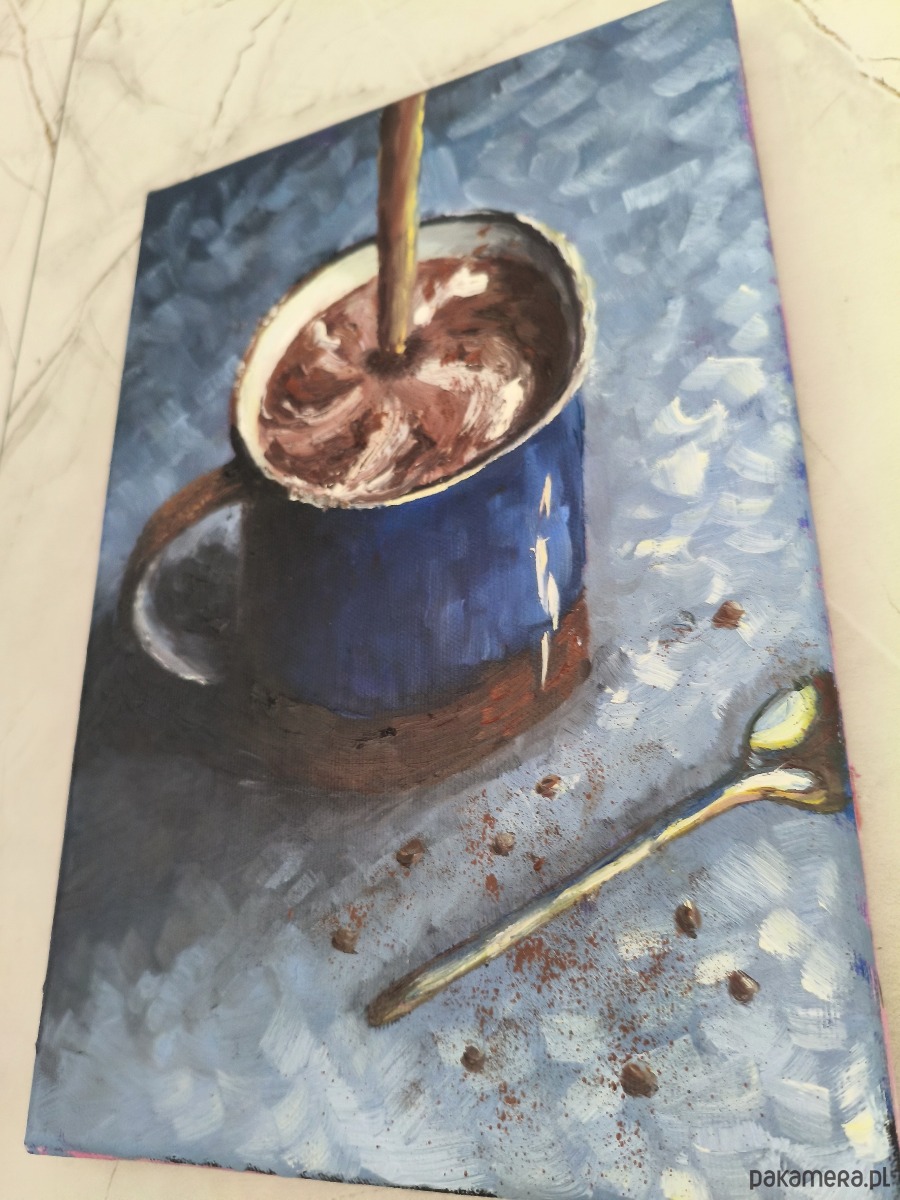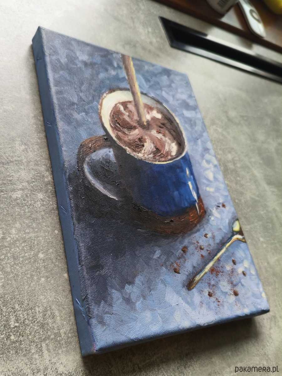 Poranna chwila Obraz olejny kawa czekolada 20x30 płótno