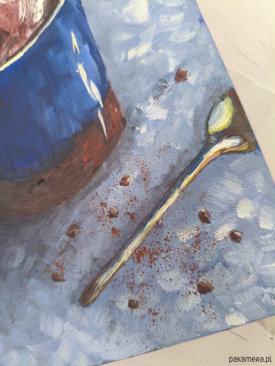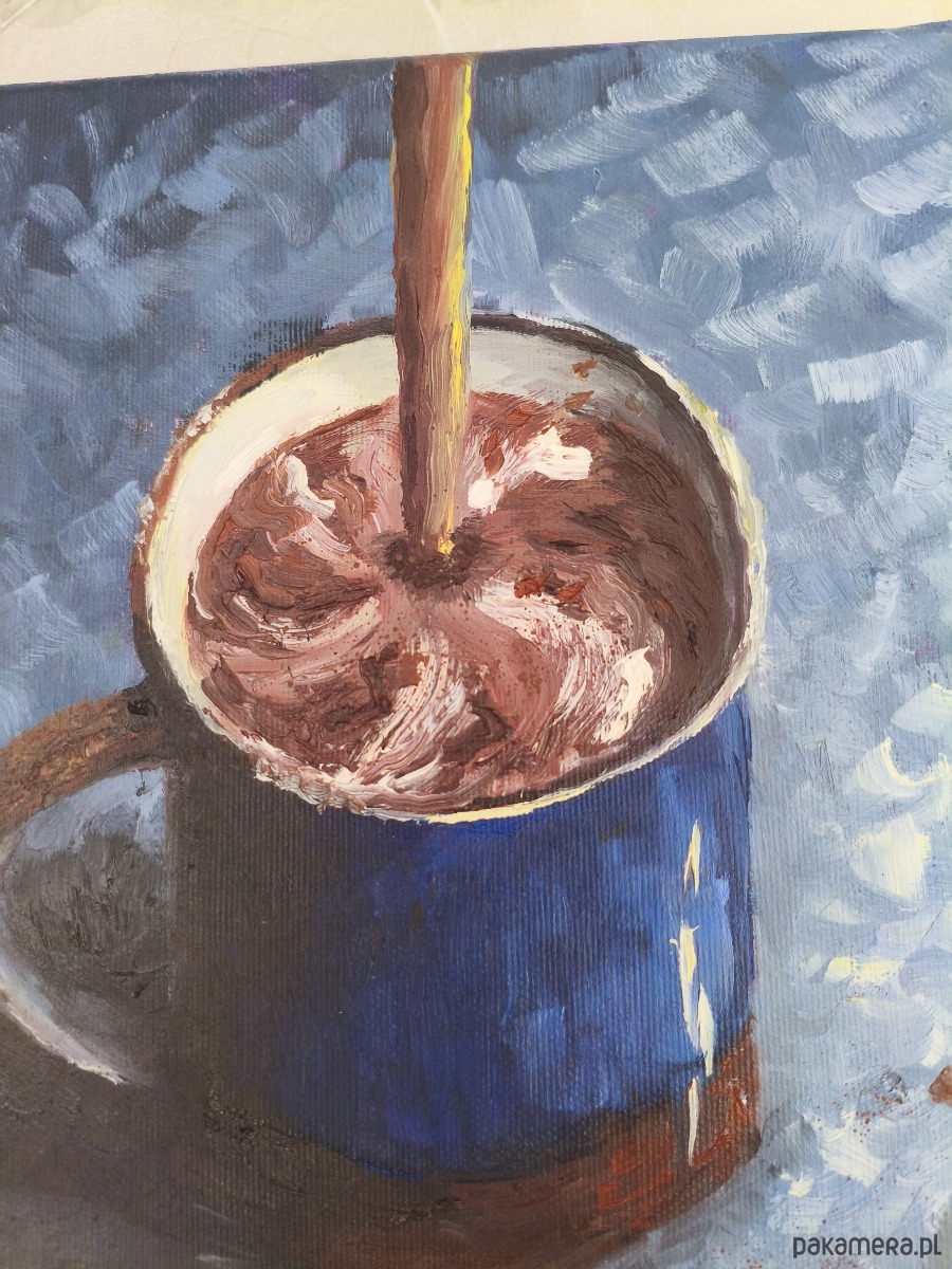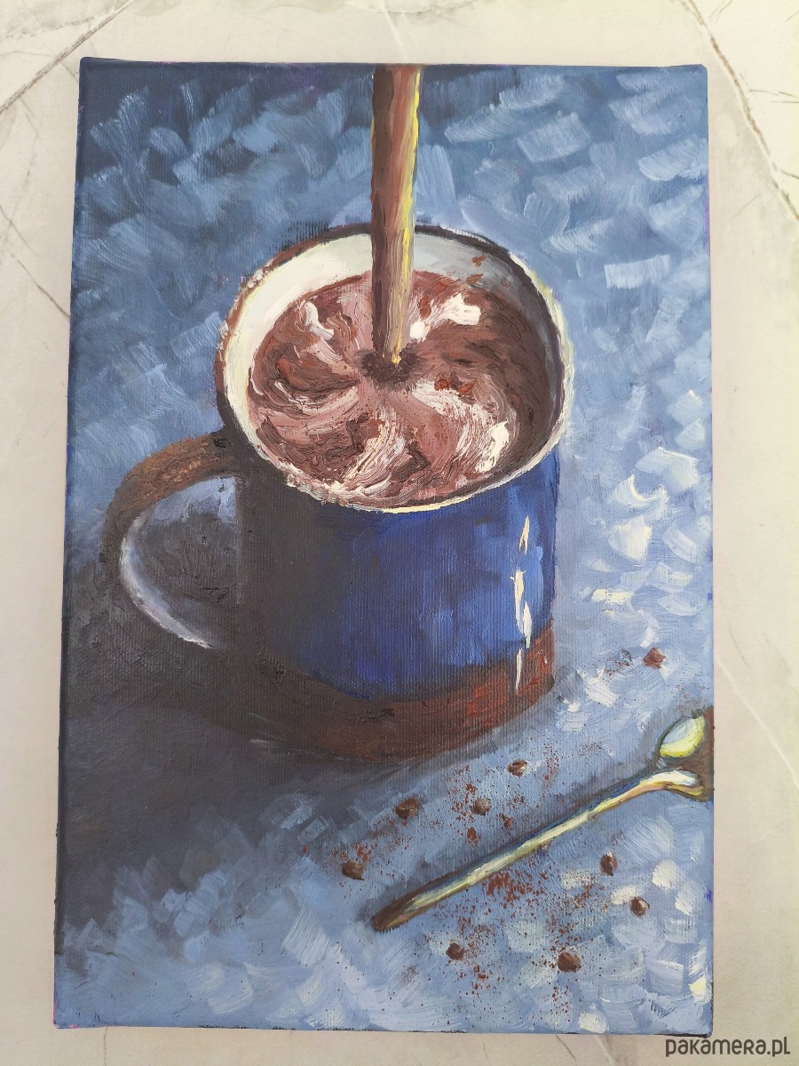 Poranna chwila Obraz olejny kawa czekolada 20x30 płótno