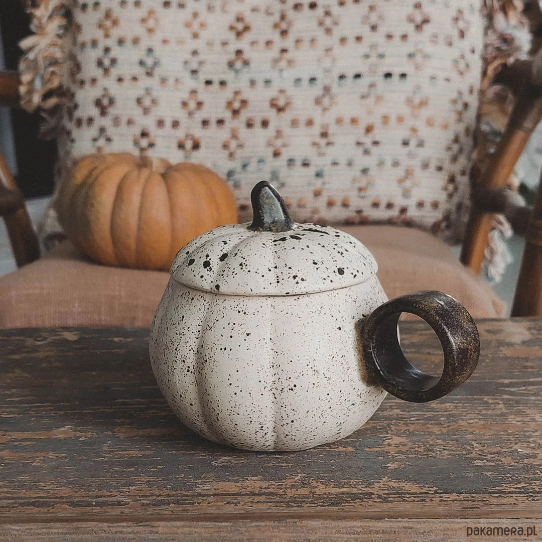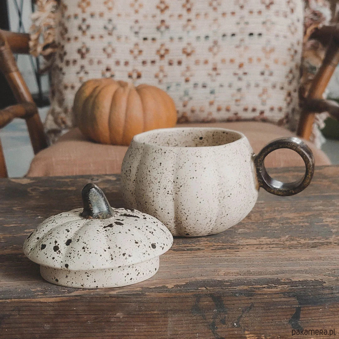 Jesienny kubek dynia w rustykalnym stylu wykonany 100% ręcznie.