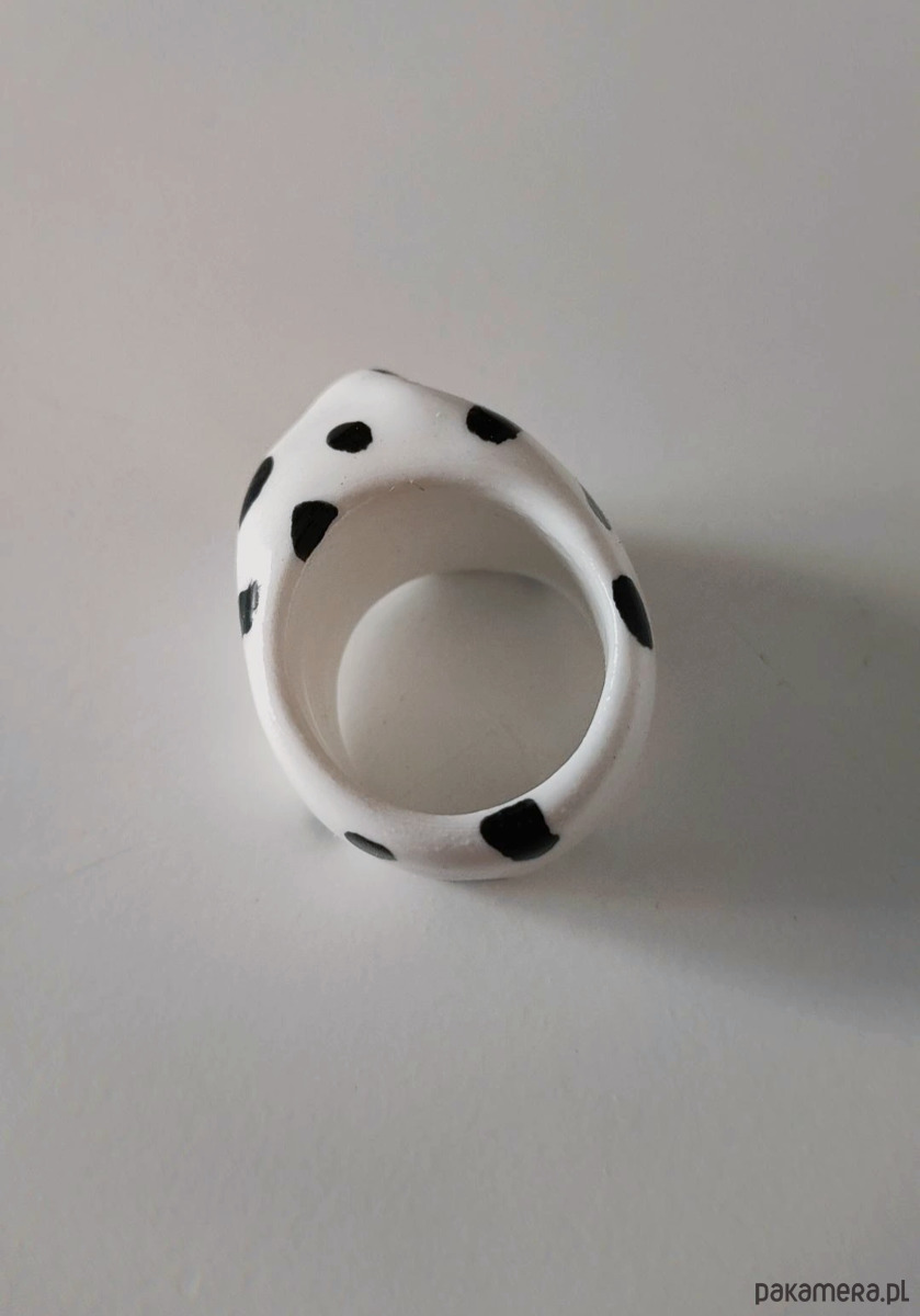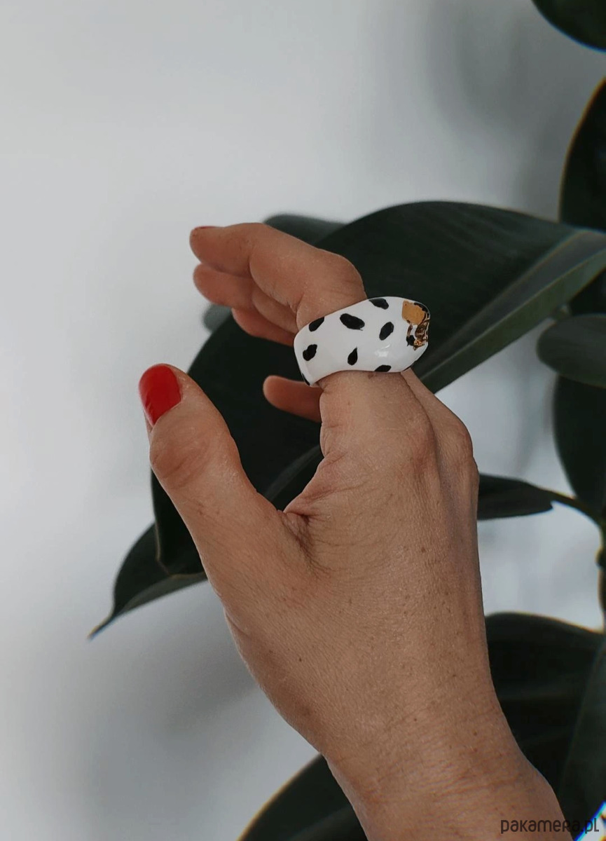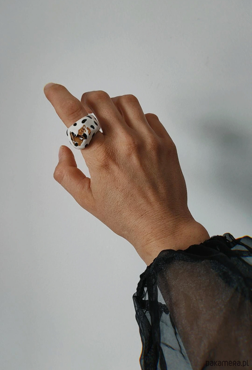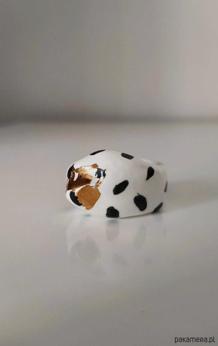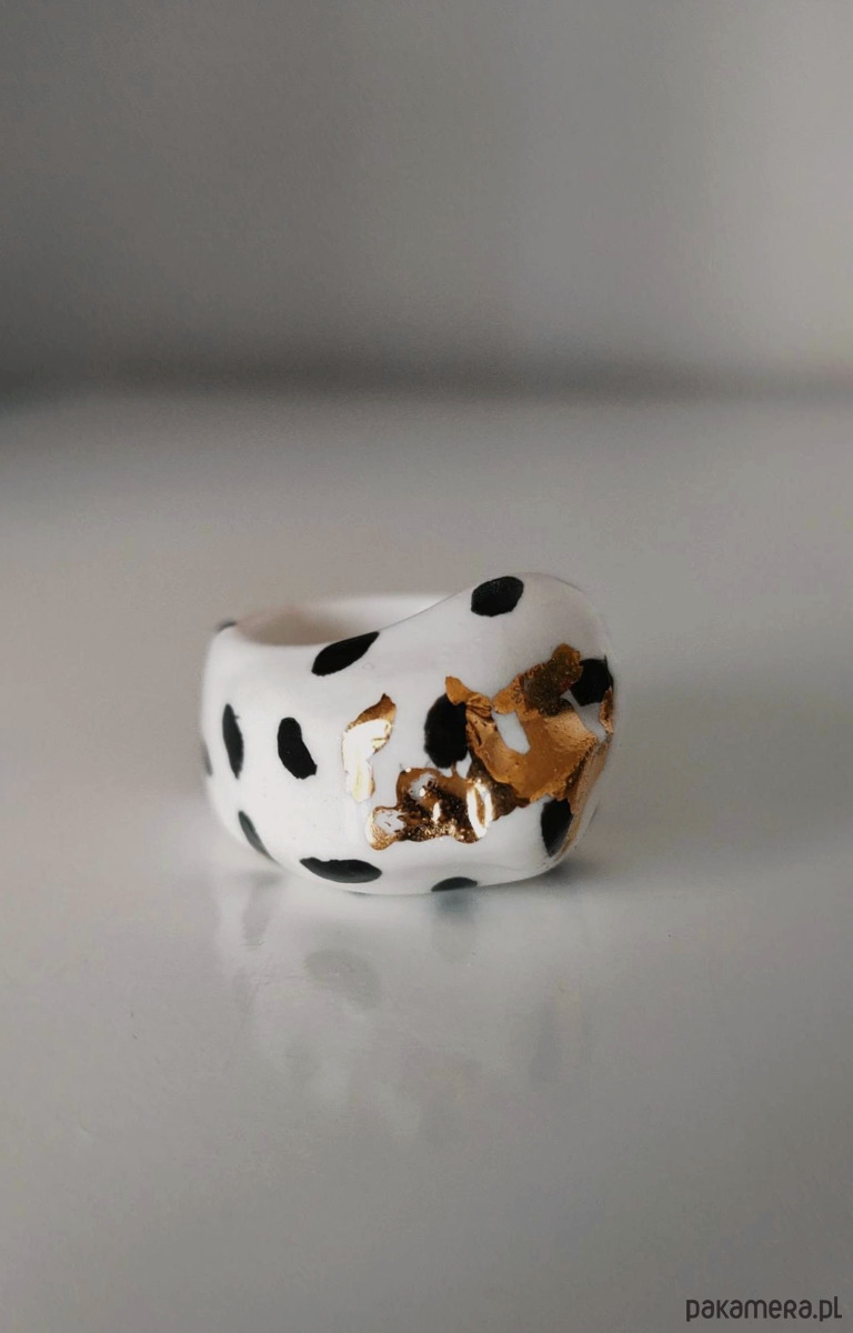 Unikatowy pierścionek z porcelany, zdobiony prawdziwym złotem.