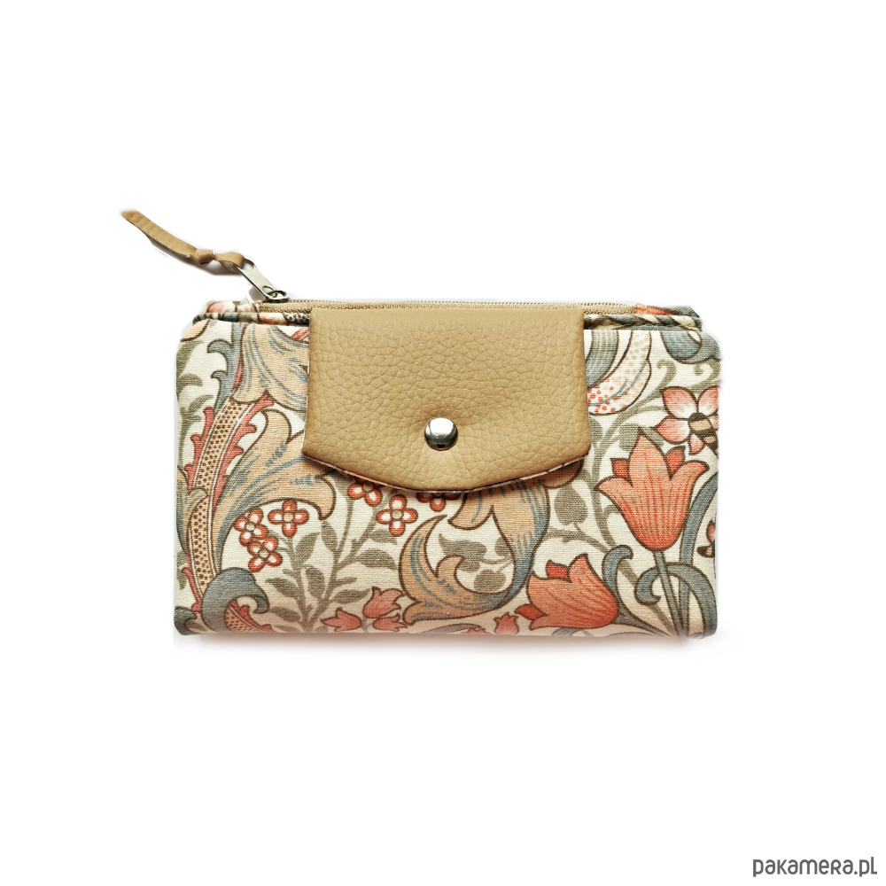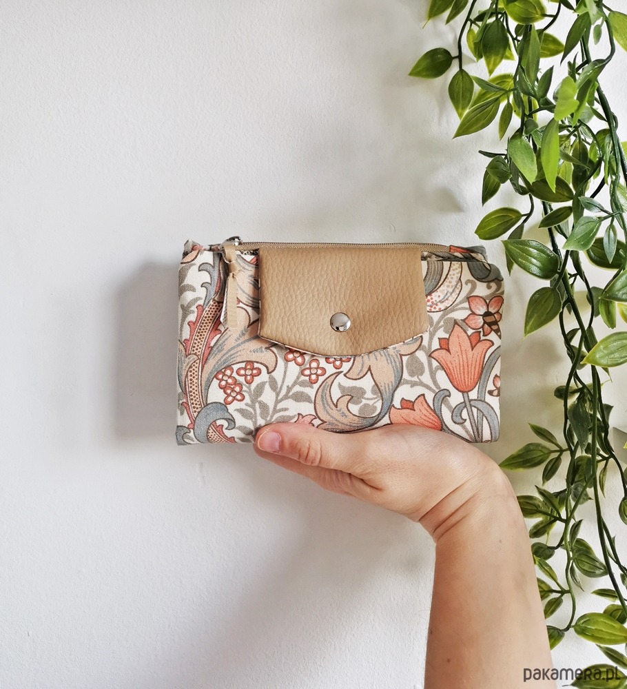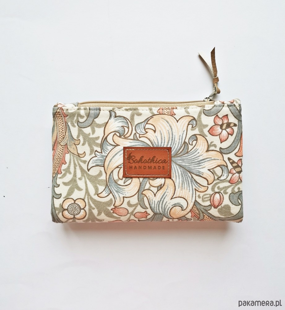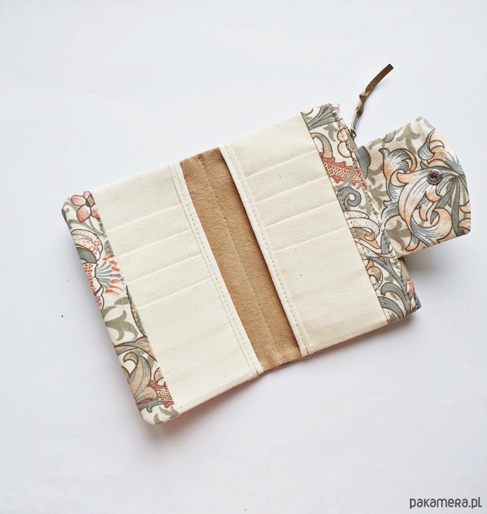 Pojemny portfel uszyty został z grubej zasłony z drugiej ręki w piękny roślinny wzór, zaprojektowany przez znanego Williama Morrisa.