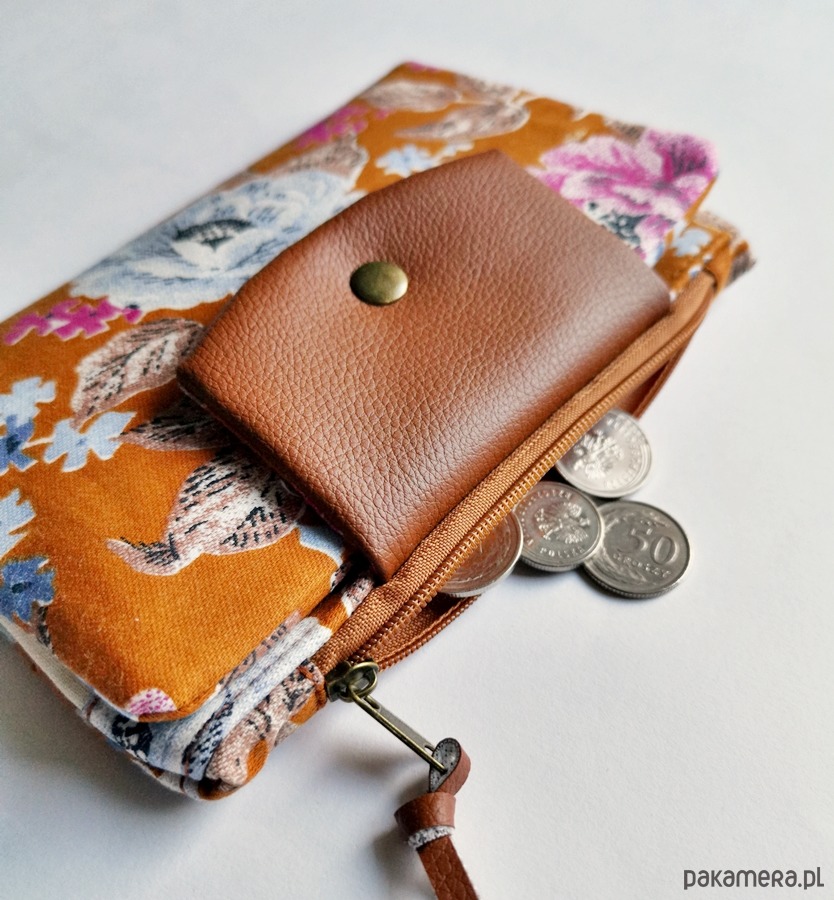 Praktycznym rozwiązaniem jest zapinana na zamek kieszeń na monety, do której masz łatwy i szybki dostęp bez konieczności otwierania całego portfela.