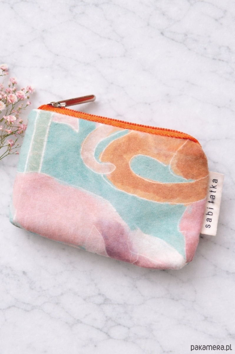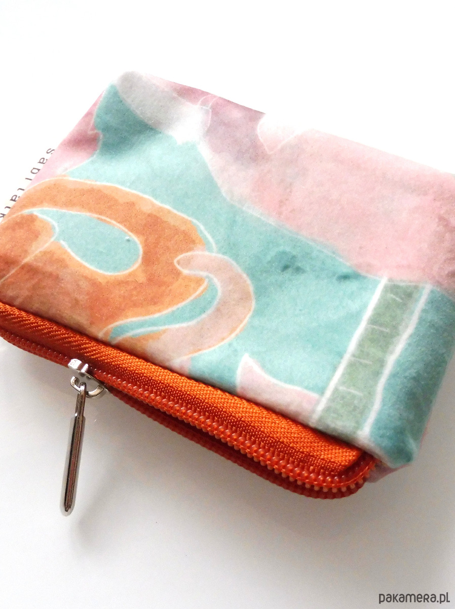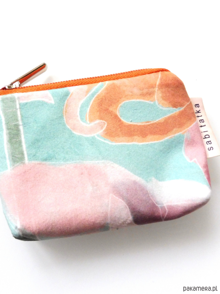 Ręcznie robiony mały portfelik na karty, dokumenty i drobne z akwarelową grafiką. Idealny w duecie z naszymi nerkami. Nie zajmuje dużo miejsca i jest leciutki.