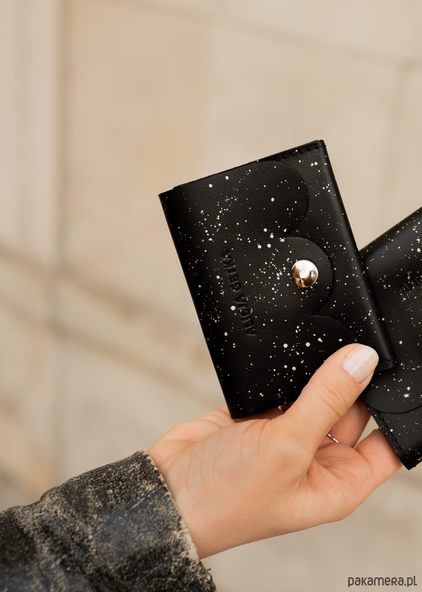 Modele z naszej wyjątkowej autorskiej linii Night Sky są ręcznie malowane metalizowaną, wytrzymałą farbą do skóry, w celu osiągnięcia efektu rozgwieżdżonego nieba - setki różnego rozmiaru kropeczek tworzą na powierzchni niepowtarzalne konstelacje gwiazd, każda sztuka jest unikatowa. Malowanie wraz z upływem czasu może nieznacznie się wycierać w miejscach najbardziej narażonych na tarcie.