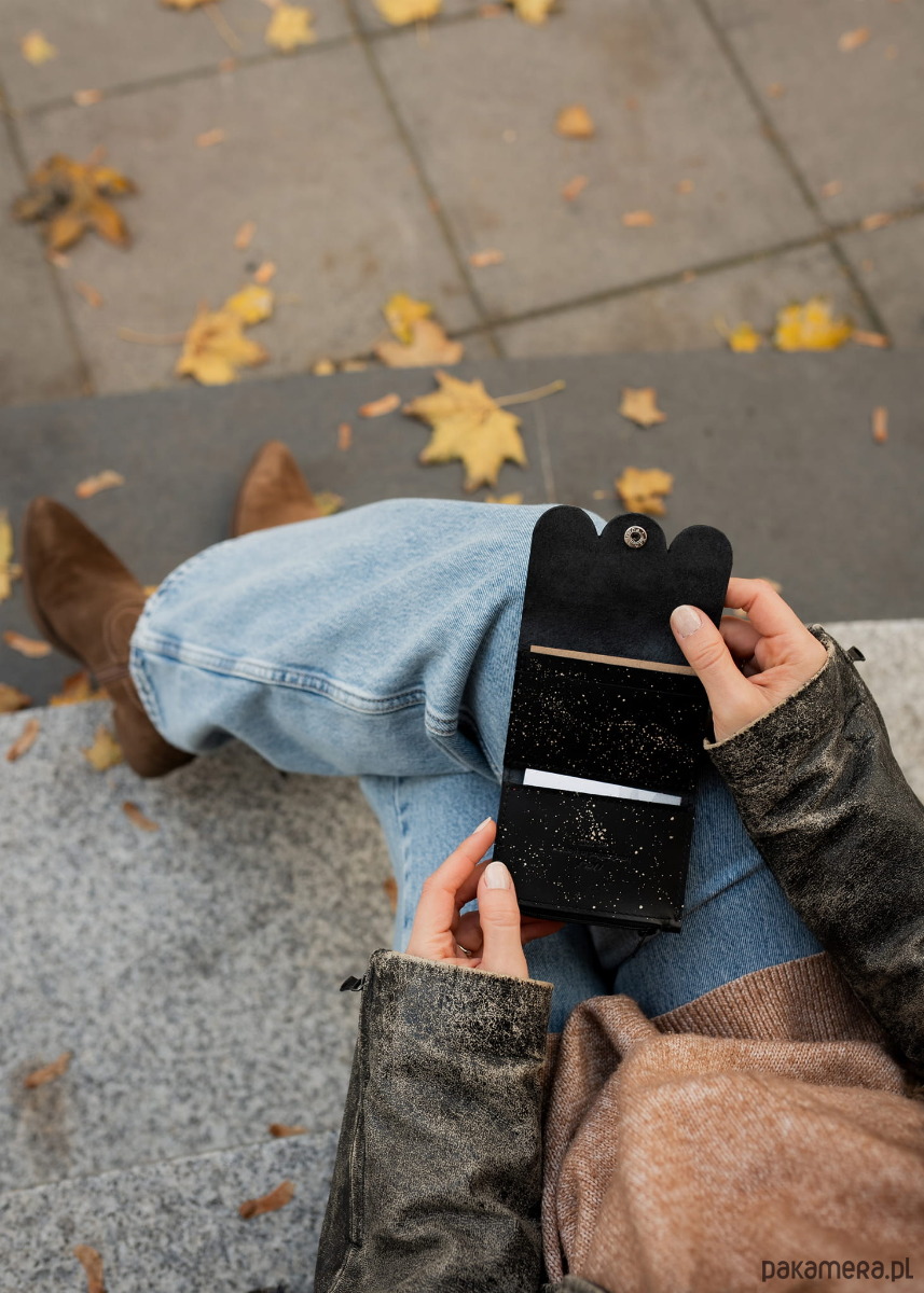 - kilka kieszeni na karty, wizytówki, złożone banknoty. Pomieszczą bez problemu kilkanaście kart/dokumentów.