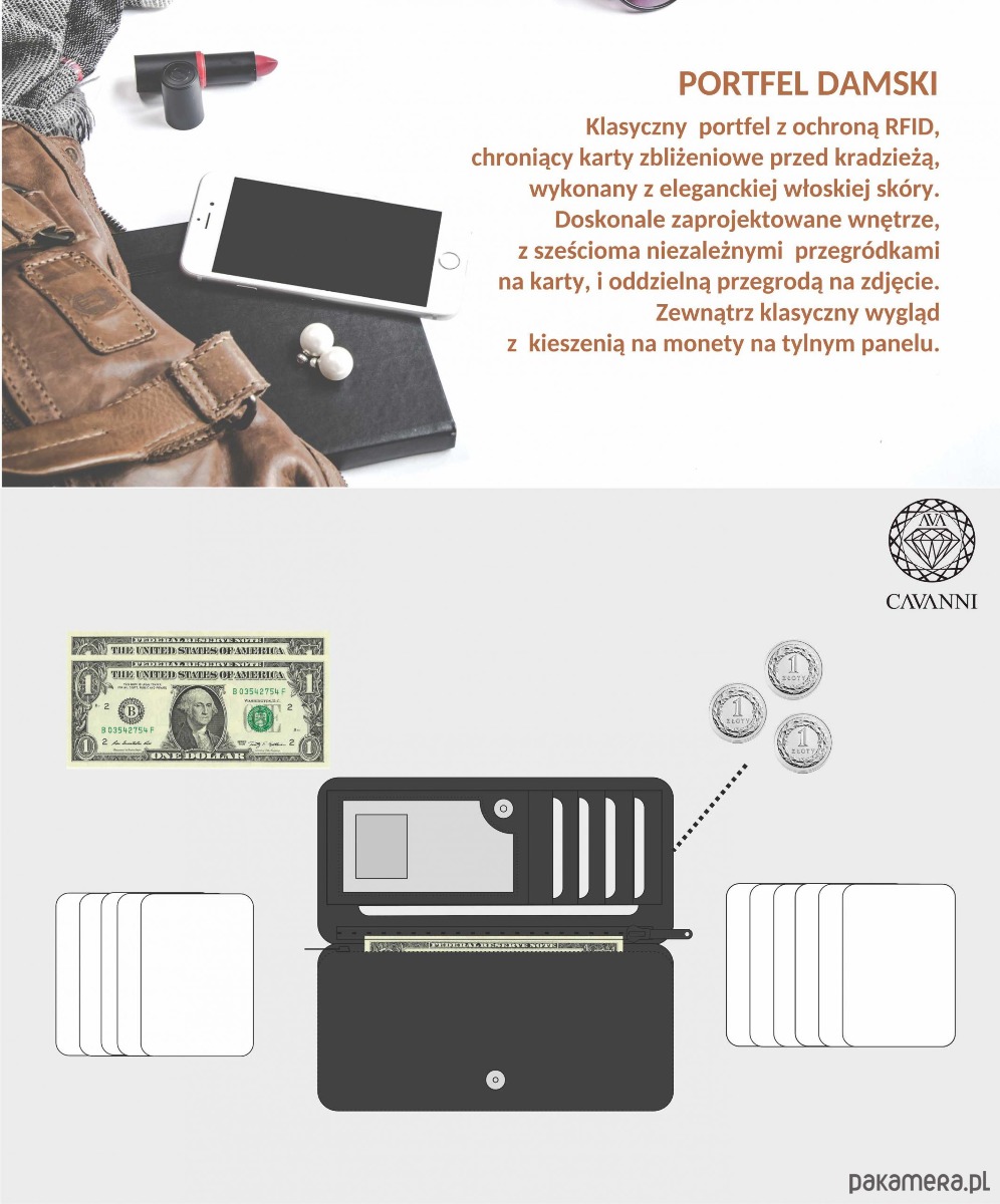 Portfel damski z oddzielnym miejscem na 6 cards