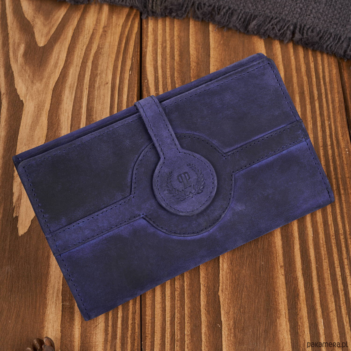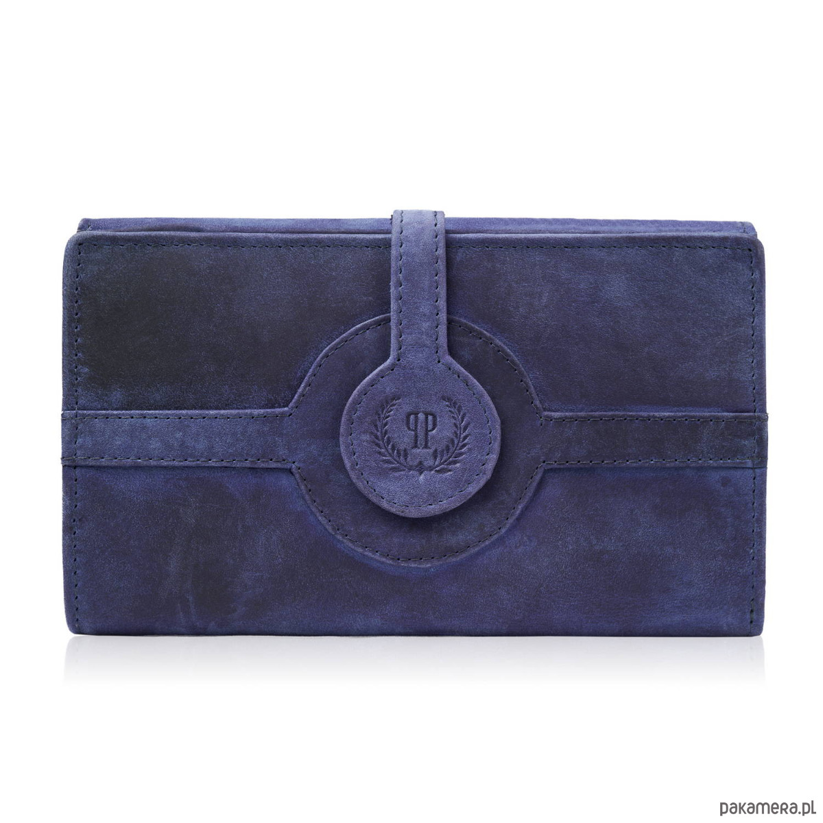 PORTFEL DAMSKI DUŻY SKÓRZANY VINTAGE GRANATOWY PAOLO PERUZZI T-134-HDB