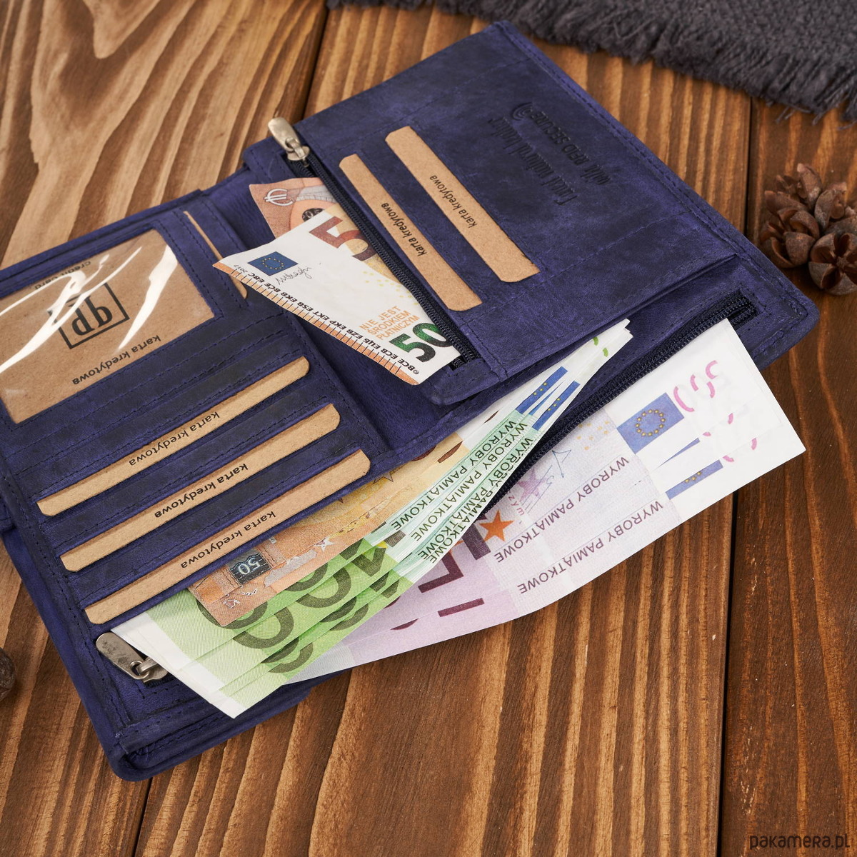 - Właściwości: z kieszenią na monety, z miejscem na zdjęcia, RFID protection