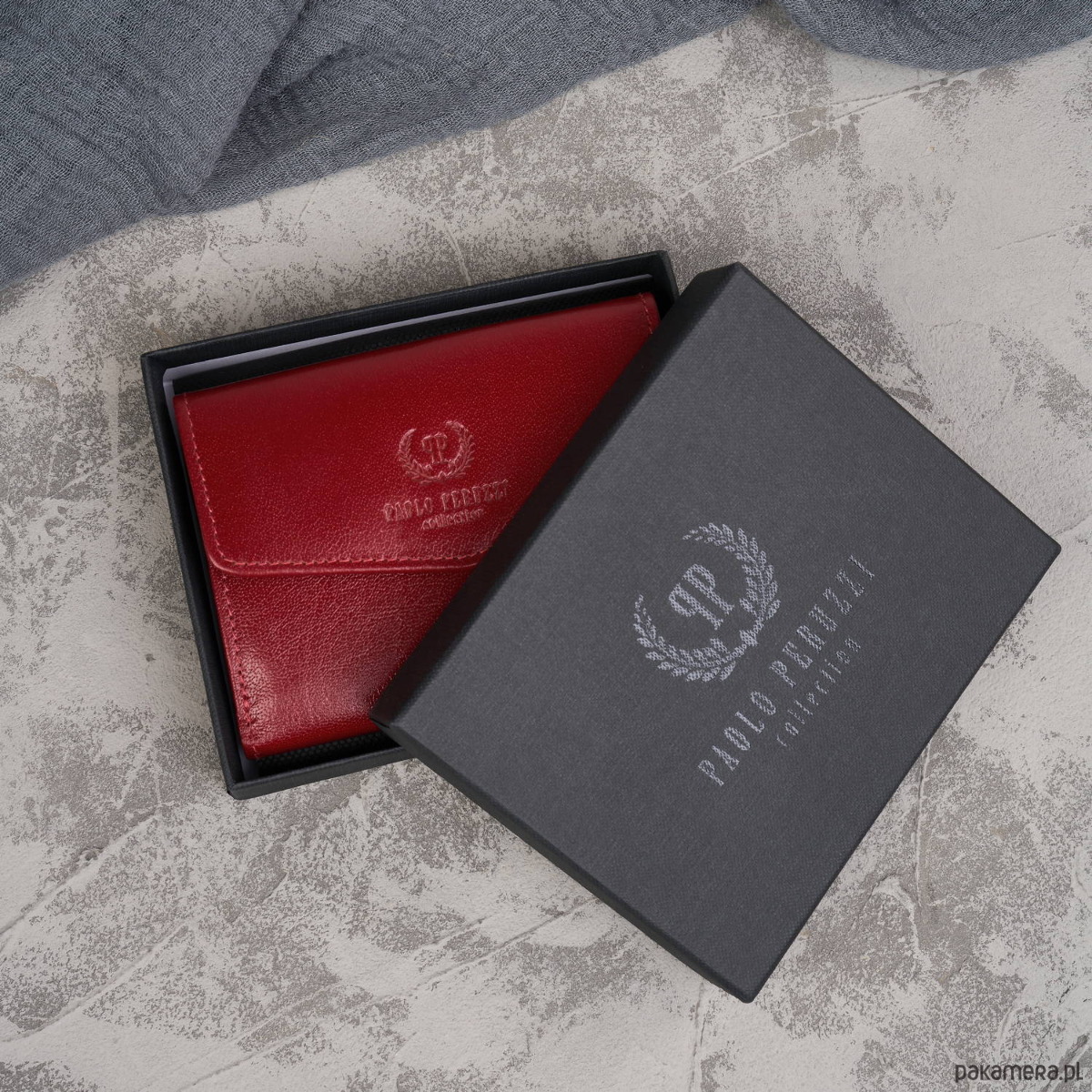 Portfel damski klasyczny czerwony skóra naturalna Paolo Peruzzi T-34-RD