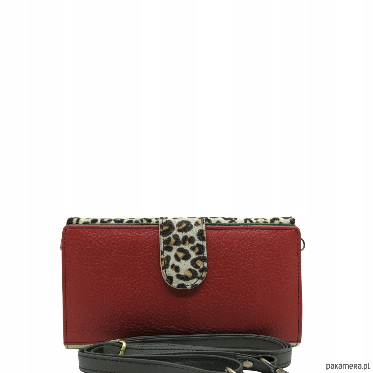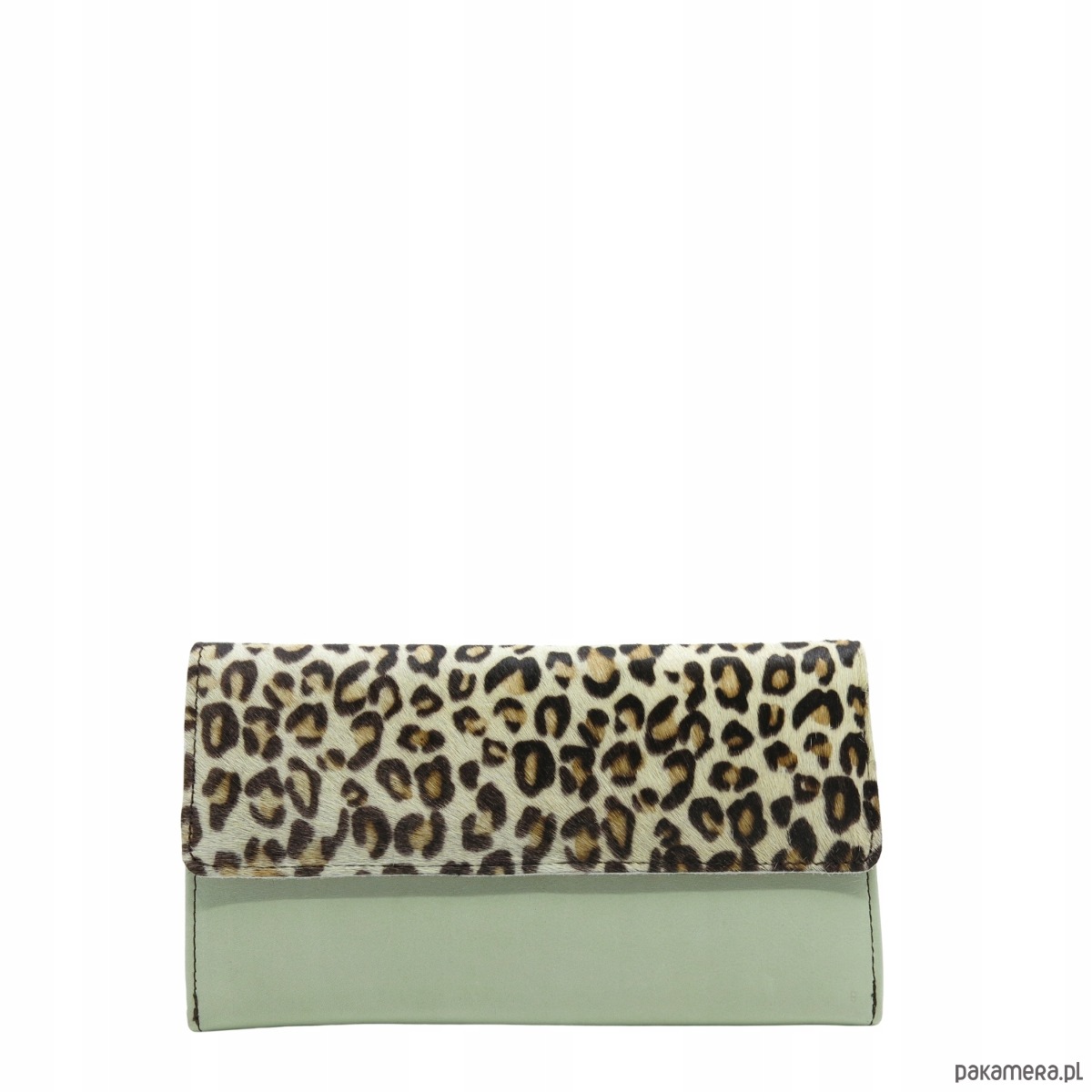 Portfel damski kopertówka skórzany klapka wzór regulowany pasek OLIVKA