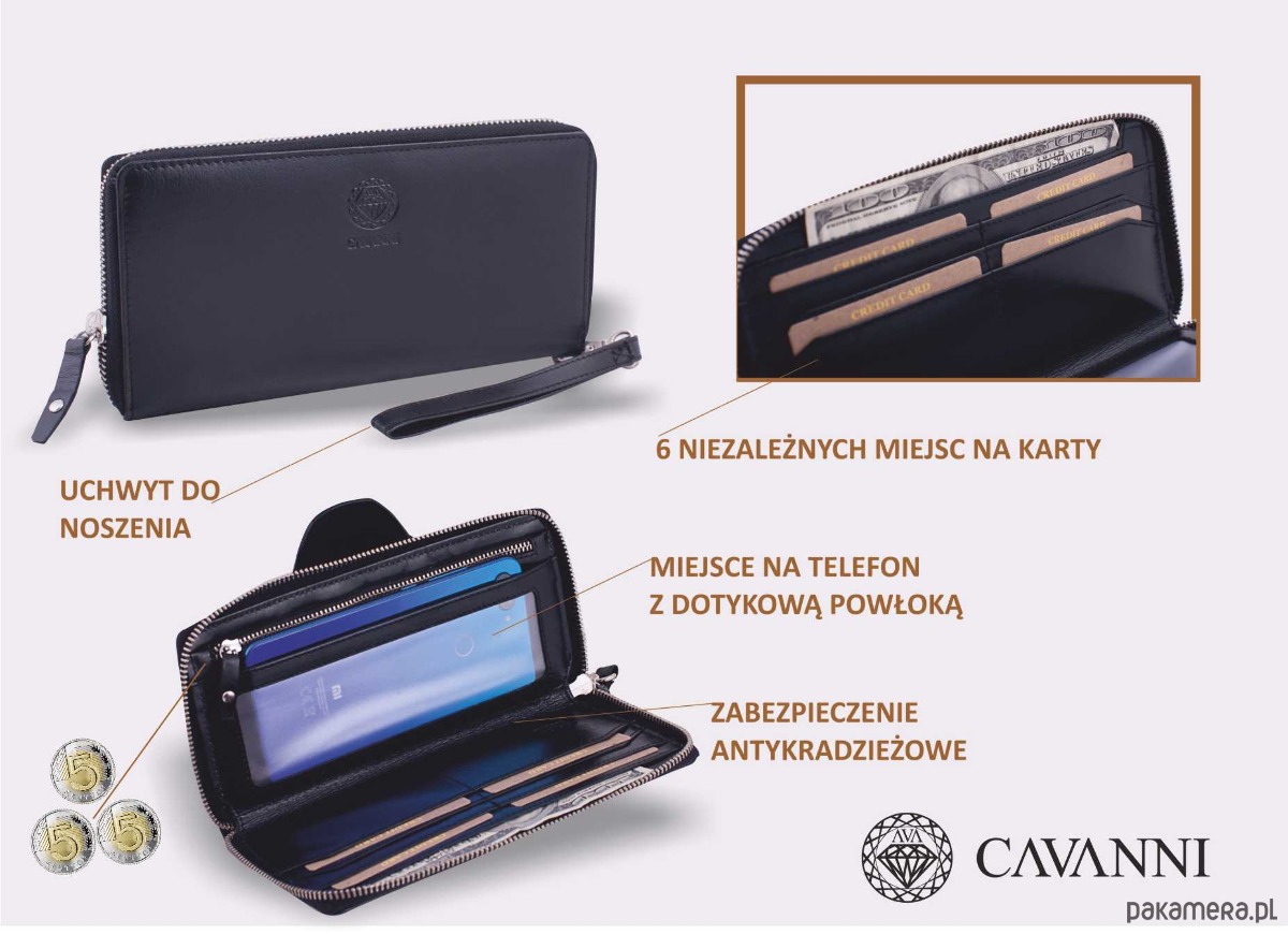 Portfel damski z oddzielnym miejscem na 6 cards