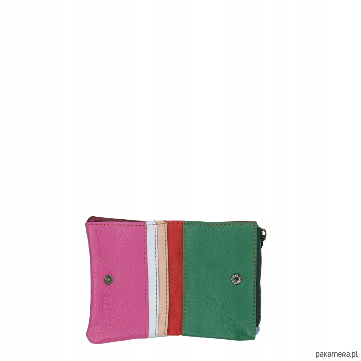 Portfel damski mały skórzany na prezent miejsce na banknoty monety OLIVKA