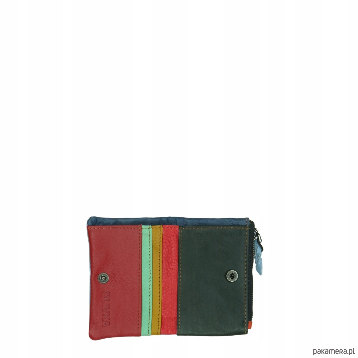 Portfel damski mały skórzany na prezent miejsce na banknoty monety OLIVKA