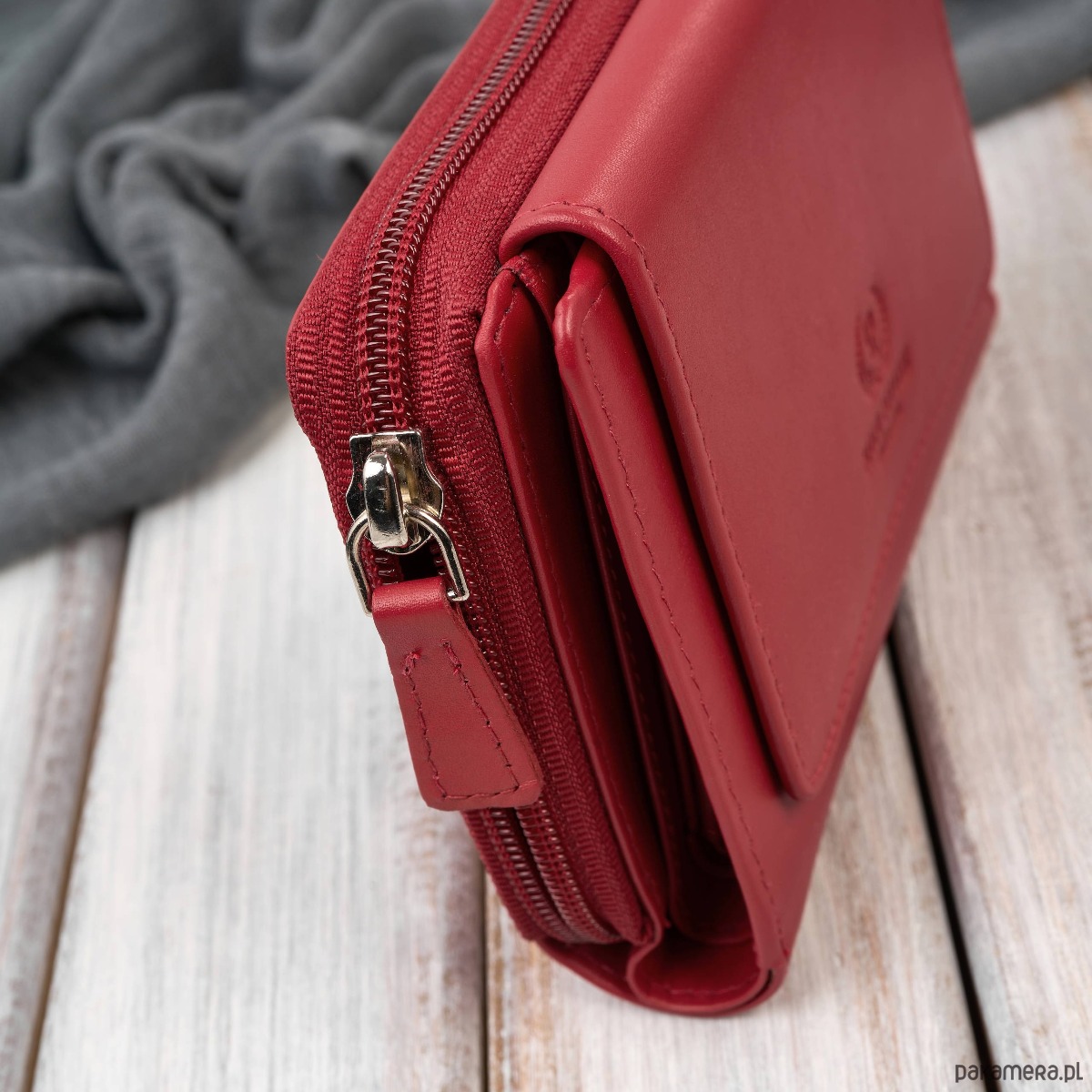 Portfel damski skórzany czerwony duży w orientacji poziomej z RFID Paolo Peru
