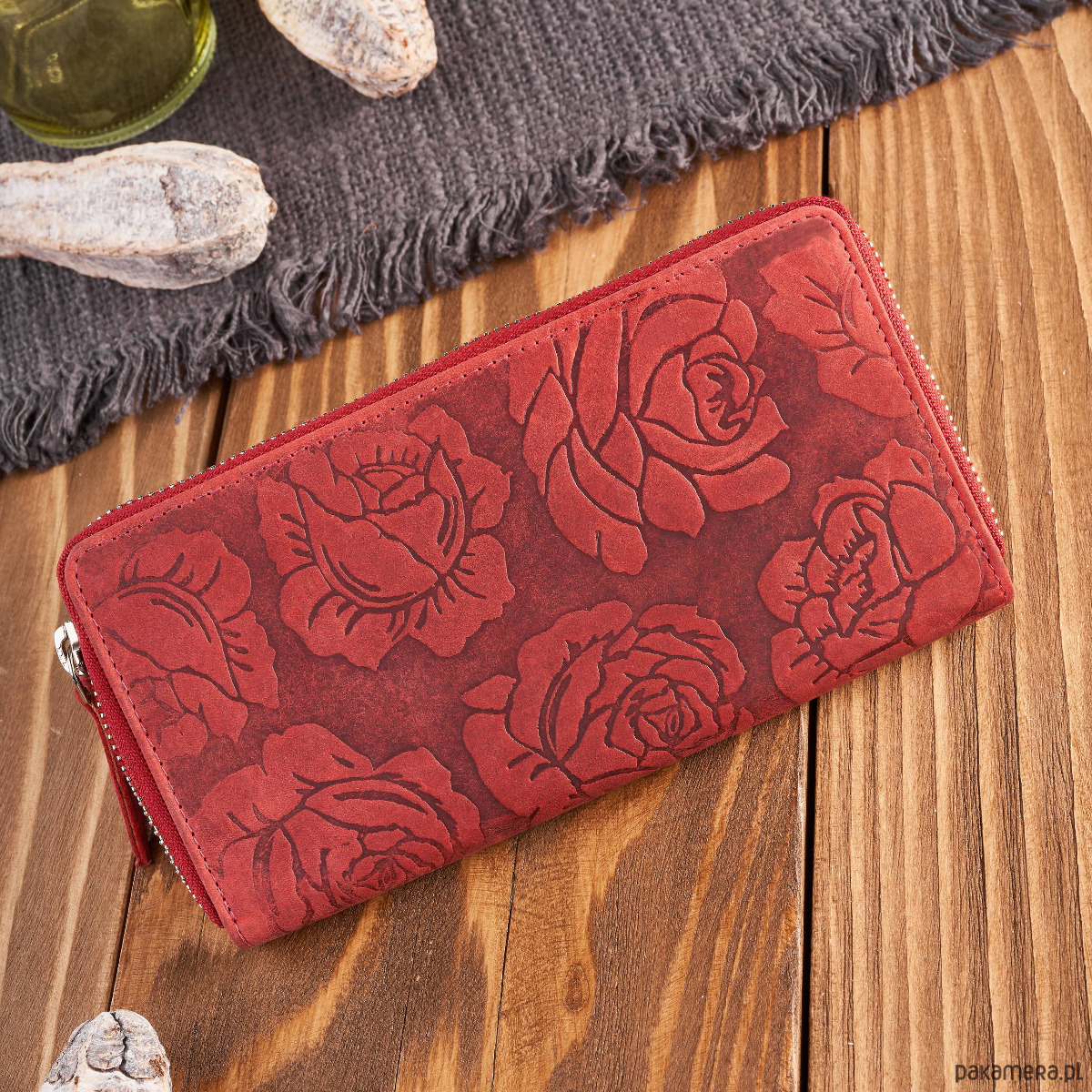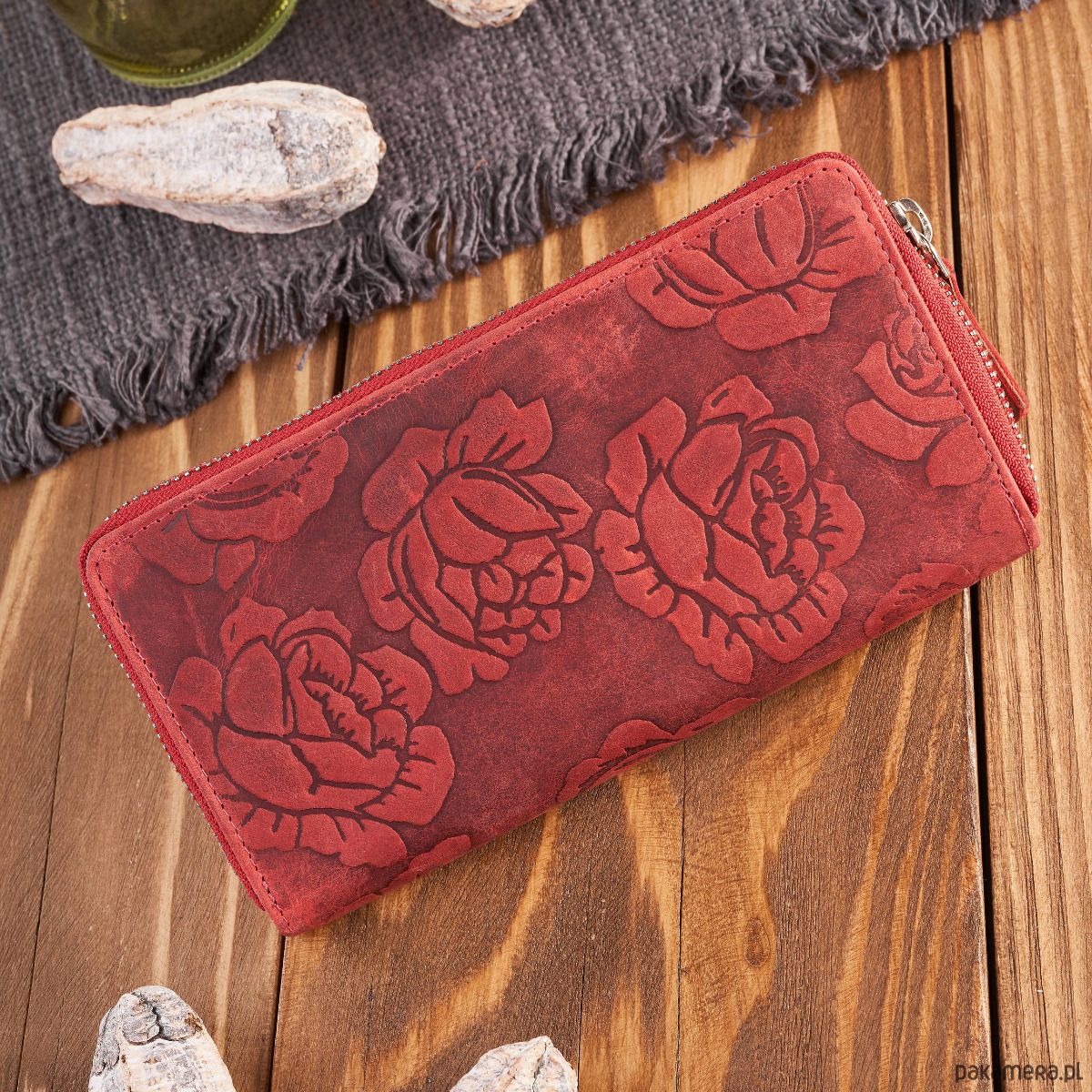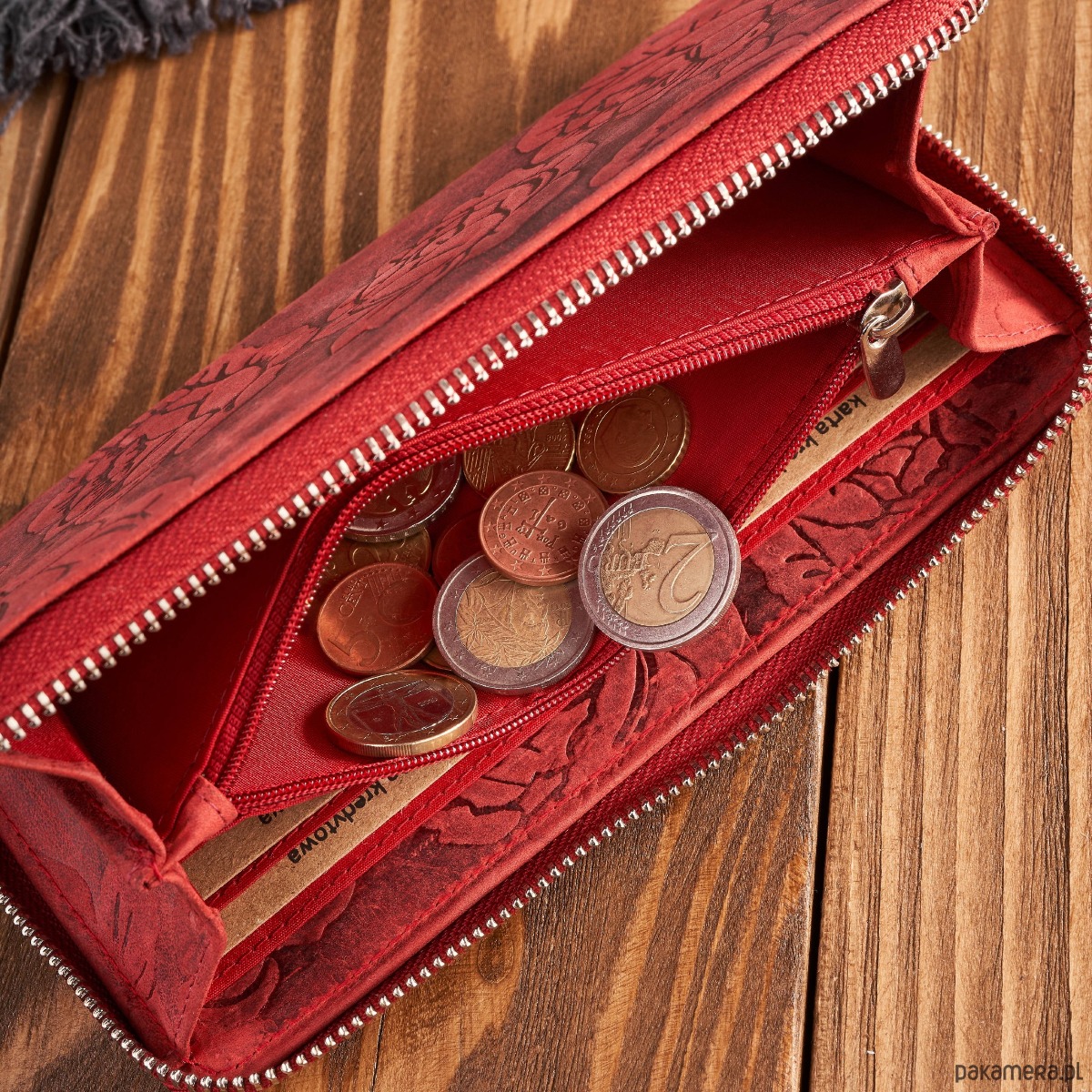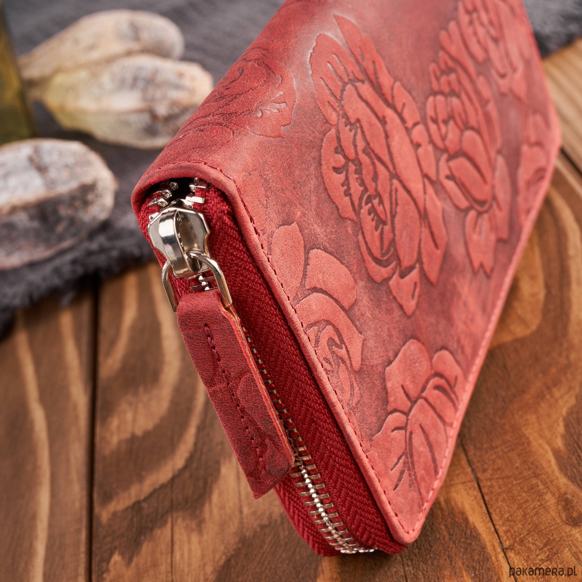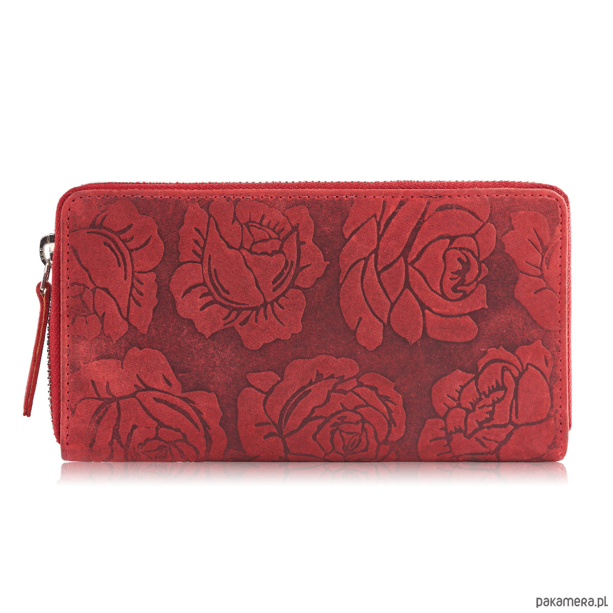 Portfel damski skórzany czerwony w kwiaty RFID vintage T-115-HRD