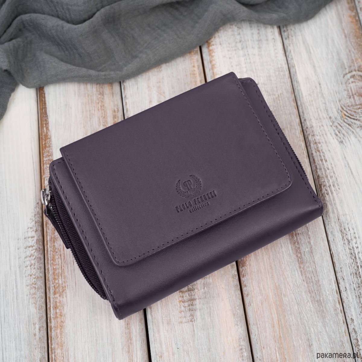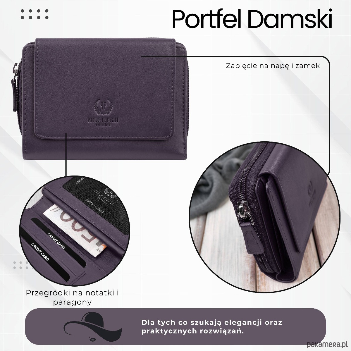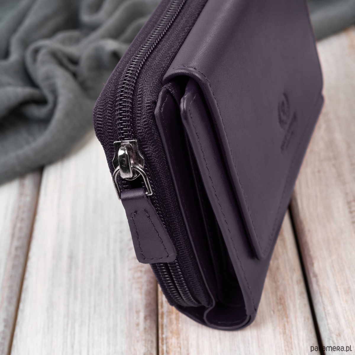 Portfel damski skórzany fioletowy duży w orientacji poziomej z RFID Paolo Per