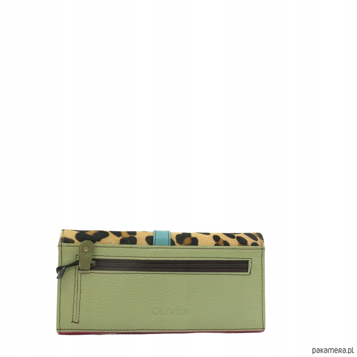 Portfel damski skórzany kieszeń na bilon przegrody na karty eko OLIVKA