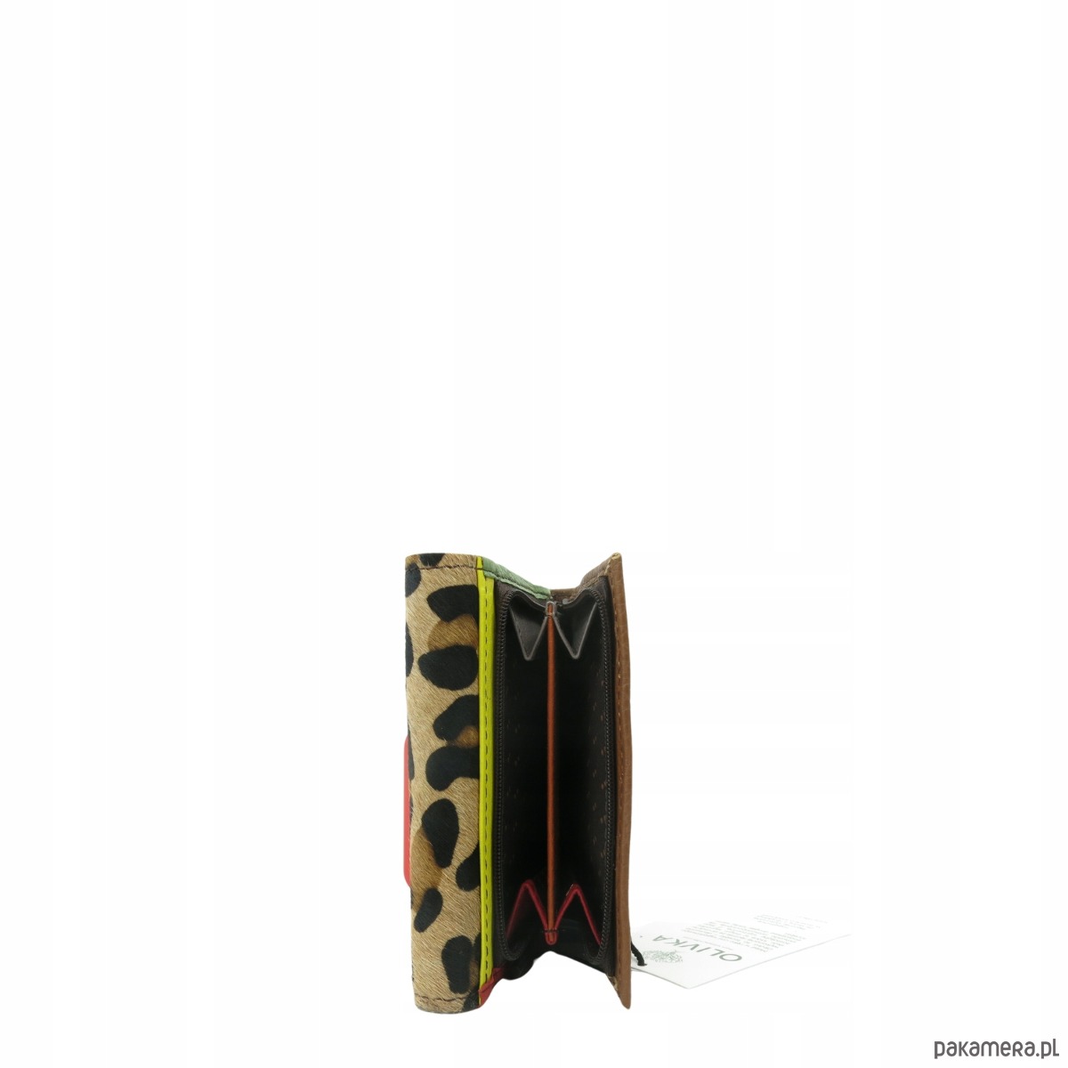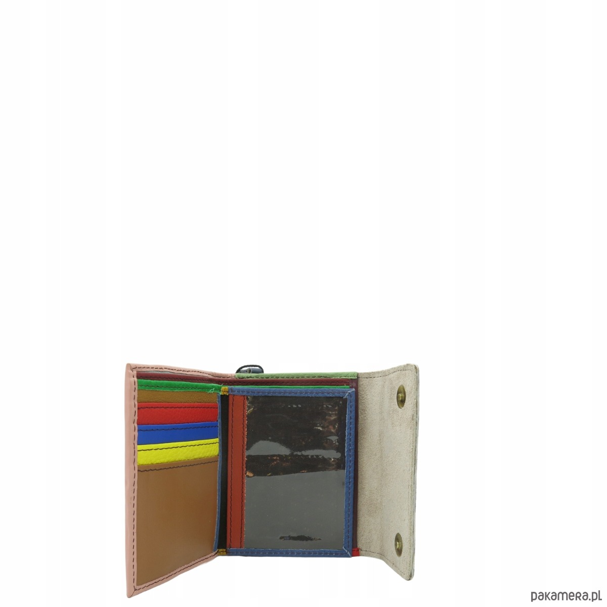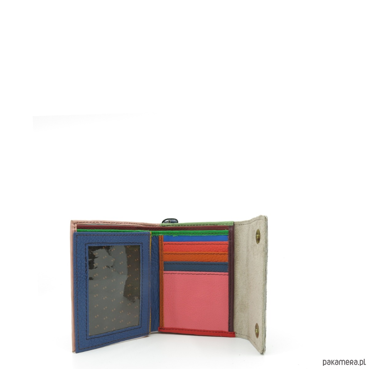 Średniej wielkości portfel wykonany ze skrawków skóry naturalnej. Jego unikalne połączenie kolorystyczne nadaje mu niepowtarzalny charakter, czyniąc go doskonałym dodatkiem. Spełni oczekiwania nawet najbardziej wymagających kobiet.