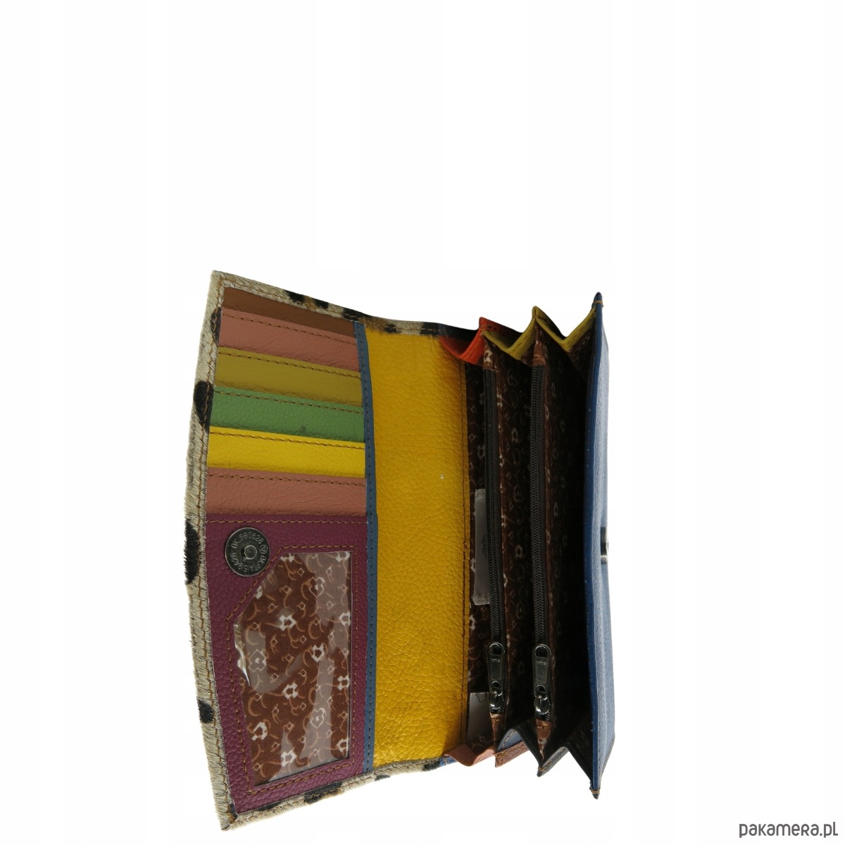 Średniej wielkości portfel wykonany ze skrawków skóry naturalnej. Jego unikalne połączenie kolorystyczne nadaje mu niepowtarzalny charakter, czyniąc go doskonałym dodatkiem. Spełni oczekiwania nawet najbardziej wymagających kobiet, a dzięki regulowanej rączce można go nosić jak kopertówkę!