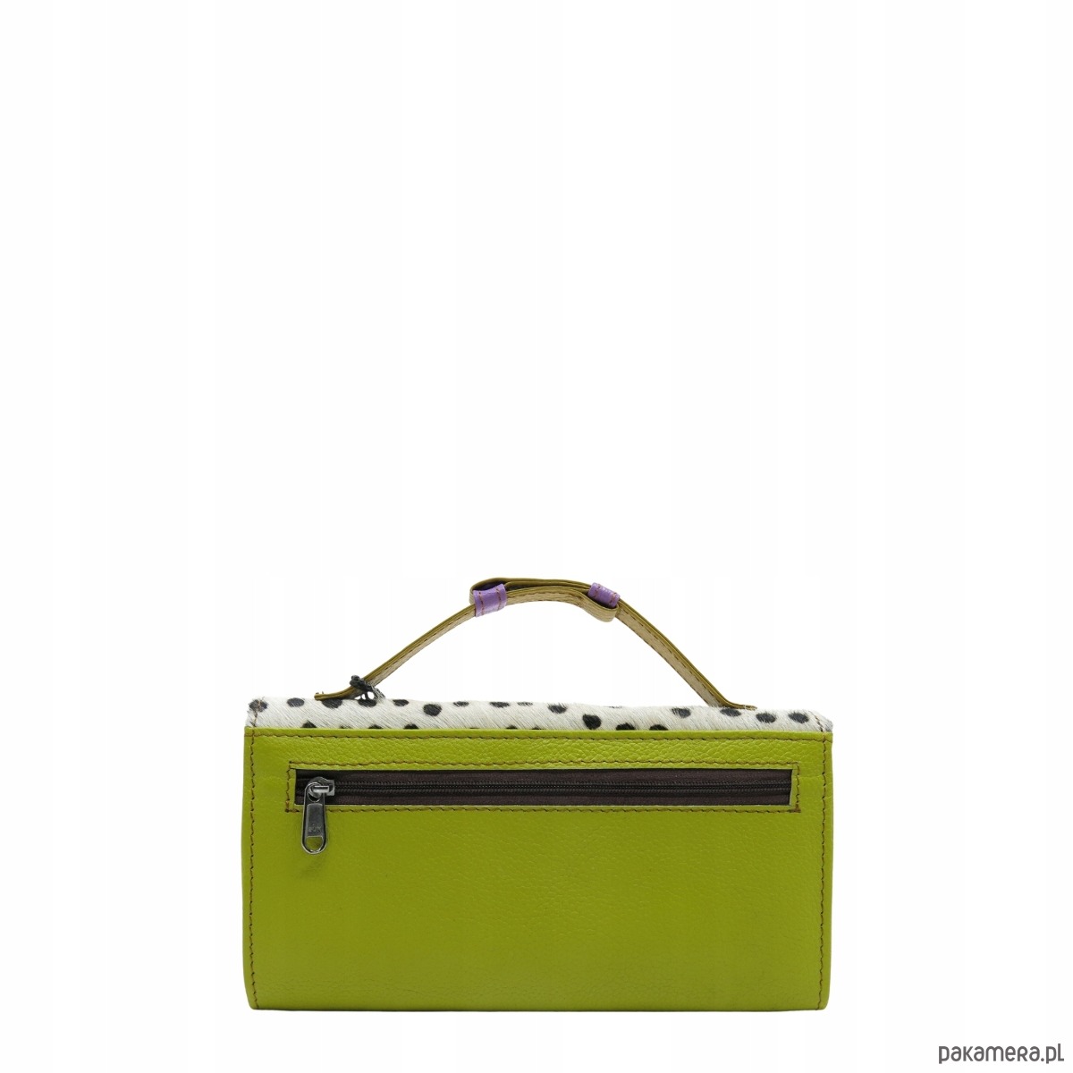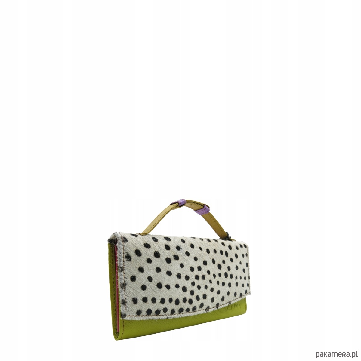 Średniej wielkości portfel wykonany ze skrawków skóry naturalnej. Jego unikalne połączenie kolorystyczne nadaje mu niepowtarzalny charakter, czyniąc go doskonałym dodatkiem. Spełni oczekiwania nawet najbardziej wymagających kobiet, a dzięki regulowanej rączce można go nosić jak kopertówkę!