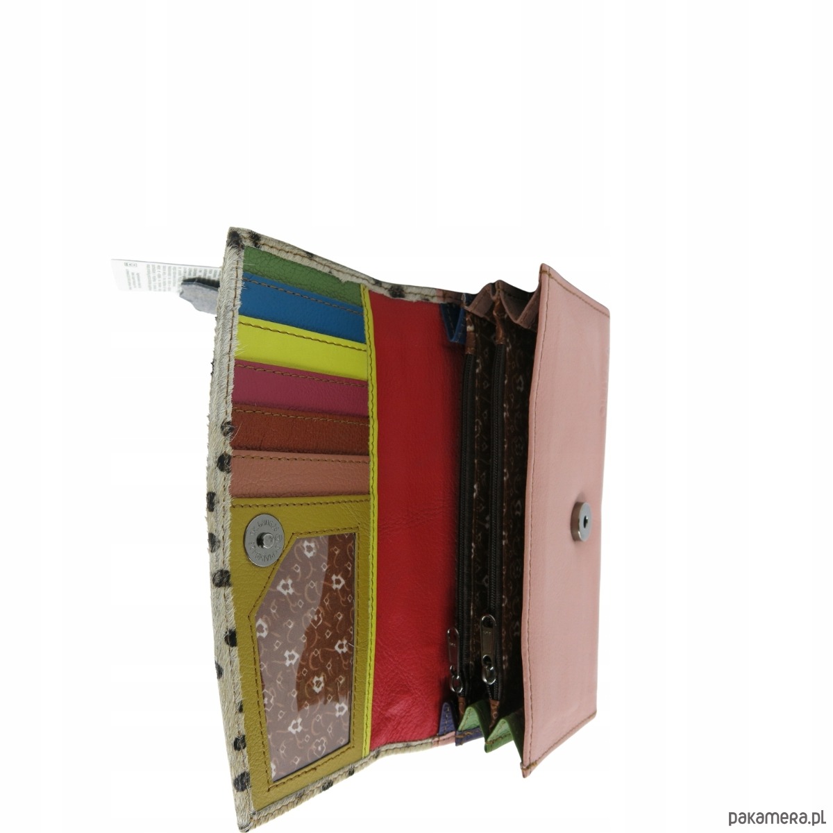 Średniej wielkości portfel wykonany ze skrawków skóry naturalnej. Jego unikalne połączenie kolorystyczne nadaje mu niepowtarzalny charakter, czyniąc go doskonałym dodatkiem. Spełni oczekiwania nawet najbardziej wymagających kobiet, a dzięki regulowanej rączce można go nosić jak kopertówkę!