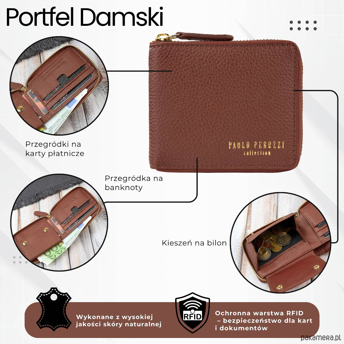Portfel damski skórzany Paolo Peruzzi KV-04-BR – mały, elegancki i niezwykle funkcjonalny