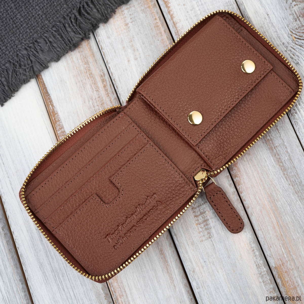 Brazowy portfel to akcent, który wyróżnia się i dodaje stylizacji charakteru — idealny dla kobiet lubiących subtelne, ale wyraziste dodatki.