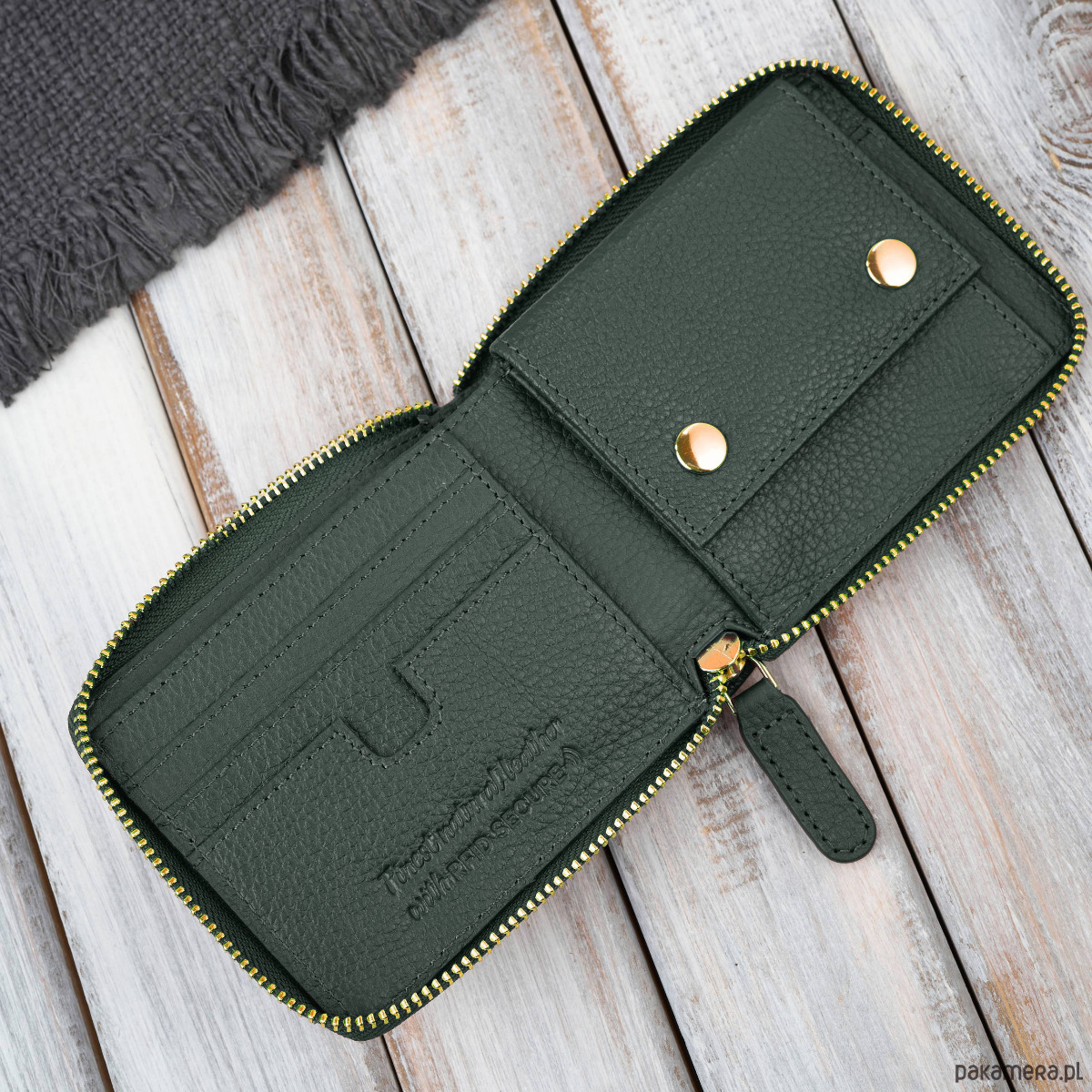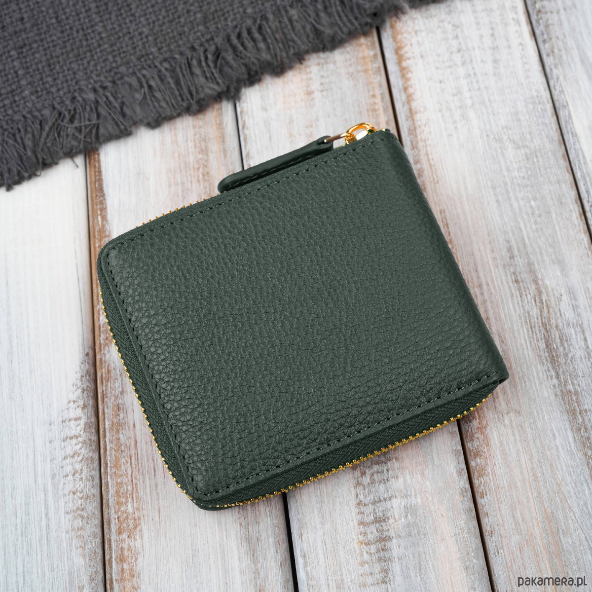 Ciemnozielony portfel to akcent, który wyróżnia się i dodaje stylizacji charakteru — idealny dla kobiet lubiących subtelne, ale wyraziste dodatki.