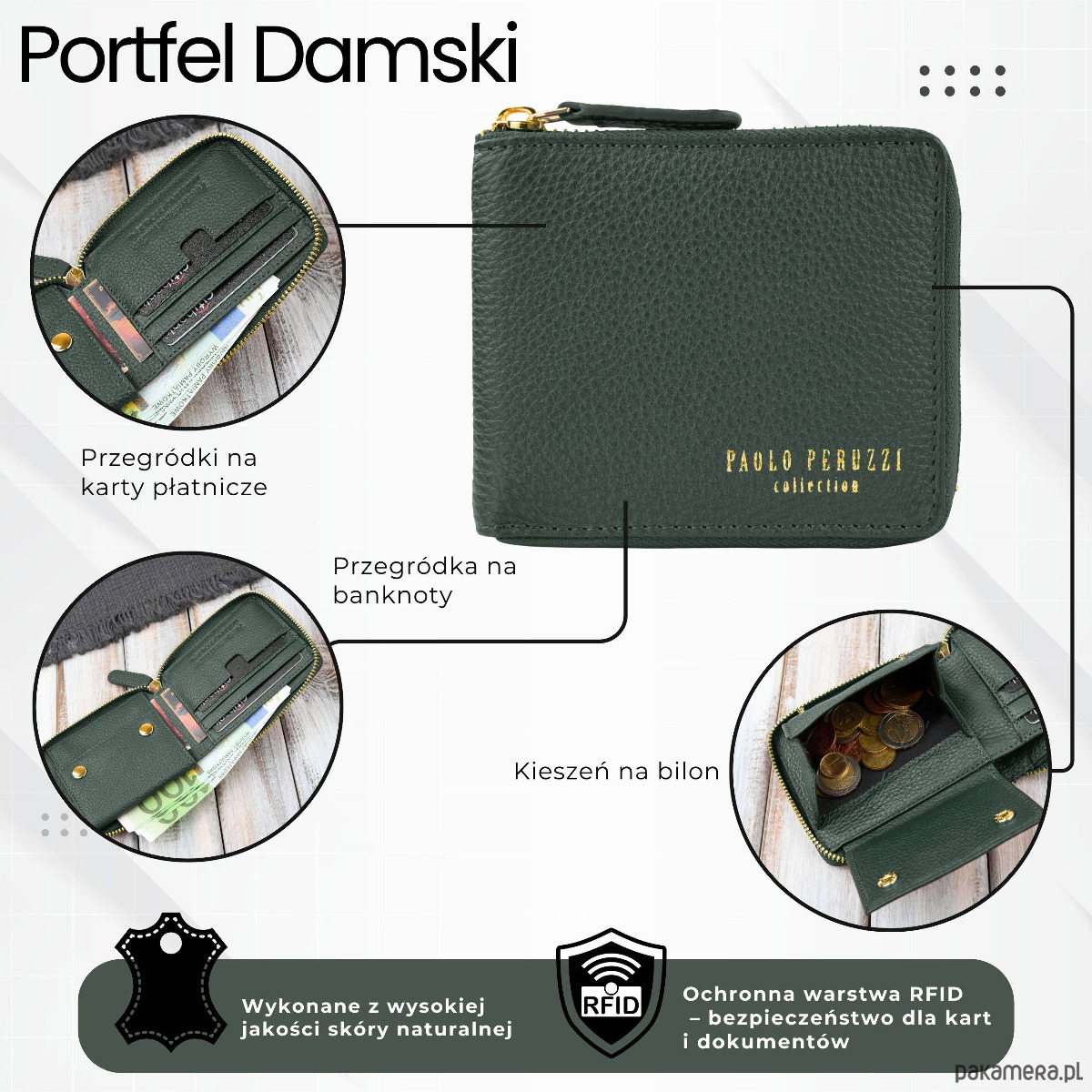 Portfel damski skórzany Paolo Peruzzi KV-04-DGR – mały, elegancki i niezwykle funkcjonalny
