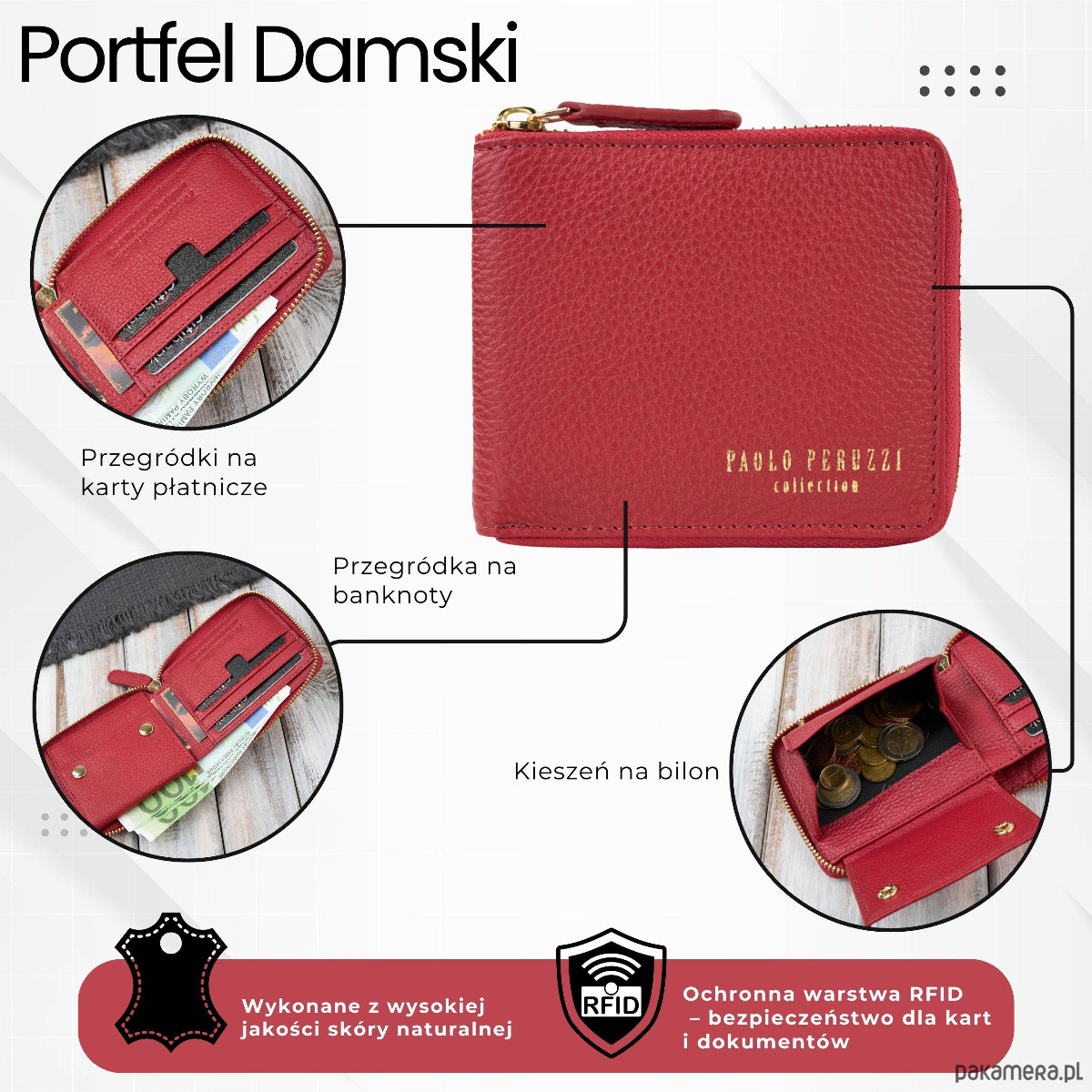 Portfel damski skórzany Paolo Peruzzi KV-04-RD – mały, elegancki i niezwykle funkcjonalny