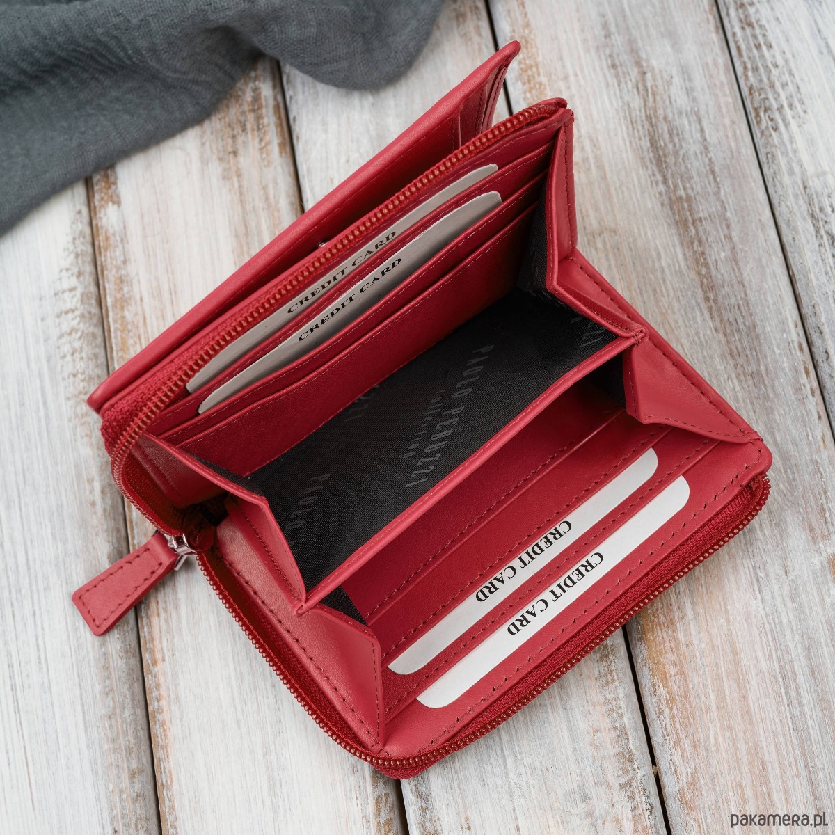 Portfel damski SL-06-RD marki Paolo Peruzzi to idealna propozycja dla kobiet, które oczekują od dodatków nie tylko praktyczności, ale również wyjątkowego stylu. Model wykonano z miękkiej, naturalnej skóry o niezwykle przyjemnej w dotyku fakturze. Materiał ten jest trwały, odporny na codzienne użytkowanie i znakomicie zachowuje swój wygląd - to portfel, który posłuży Ci przez wiele lat.
