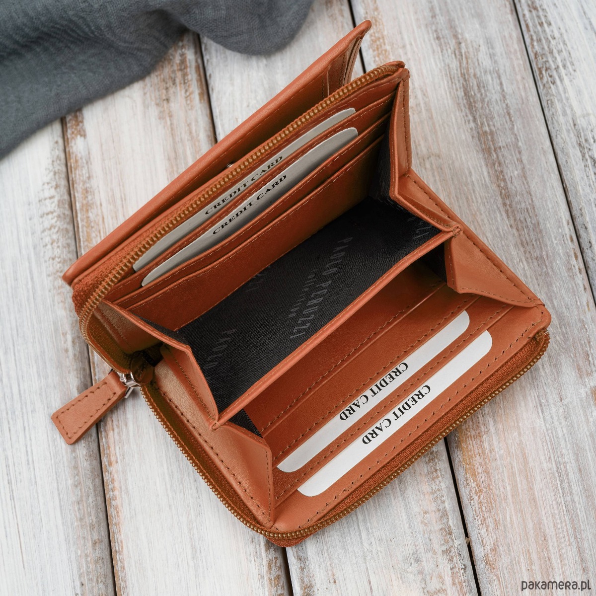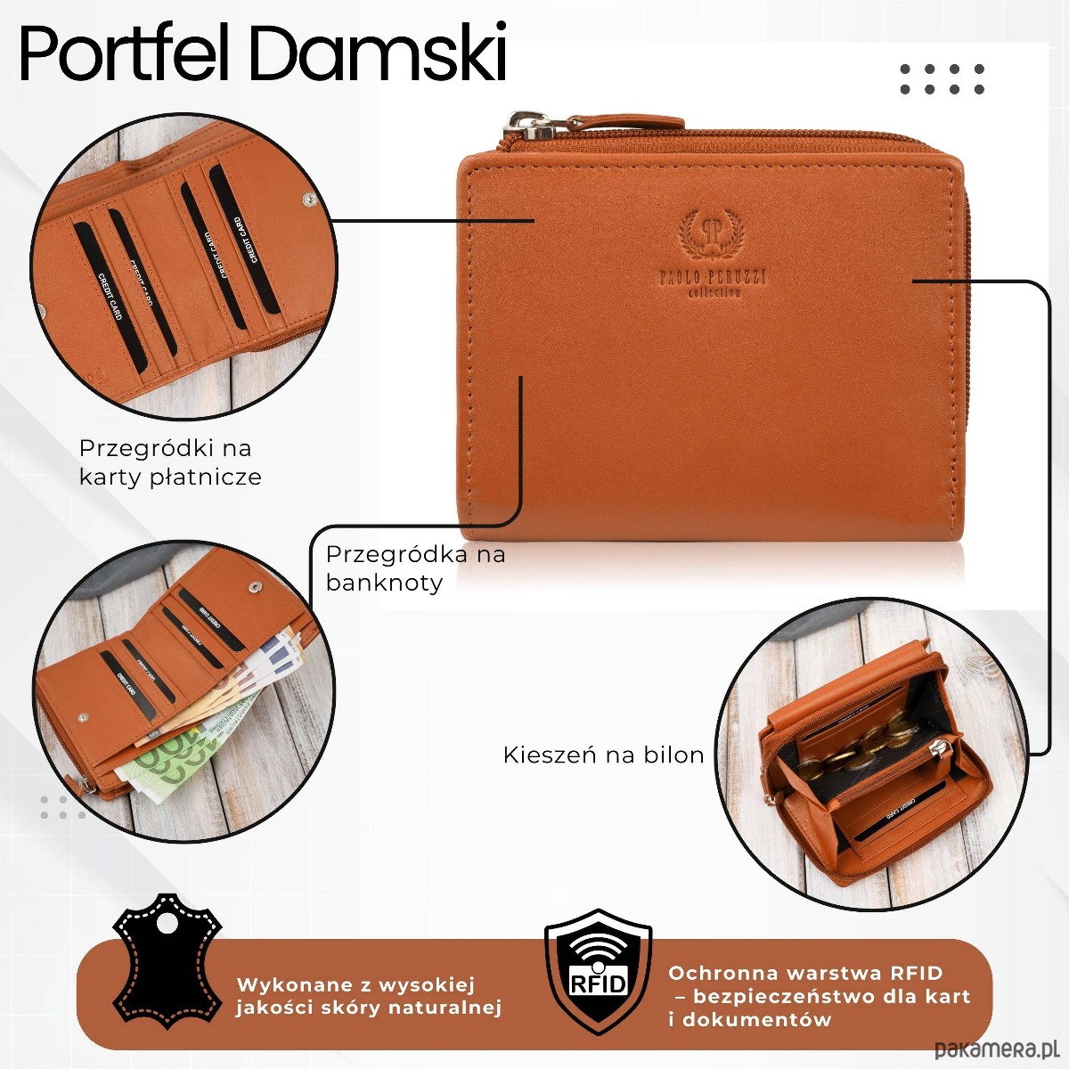 Portfel damski SL-06-OR marki Paolo Peruzzi to idealna propozycja dla kobiet, które oczekują od dodatków nie tylko praktyczności, ale również wyjątkowego stylu. Model wykonano z miękkiej, naturalnej skóry o niezwykle przyjemnej w dotyku fakturze. Materiał ten jest trwały, odporny na codzienne użytkowanie i znakomicie zachowuje swój wygląd - to portfel, który posłuży Ci przez wiele lat.