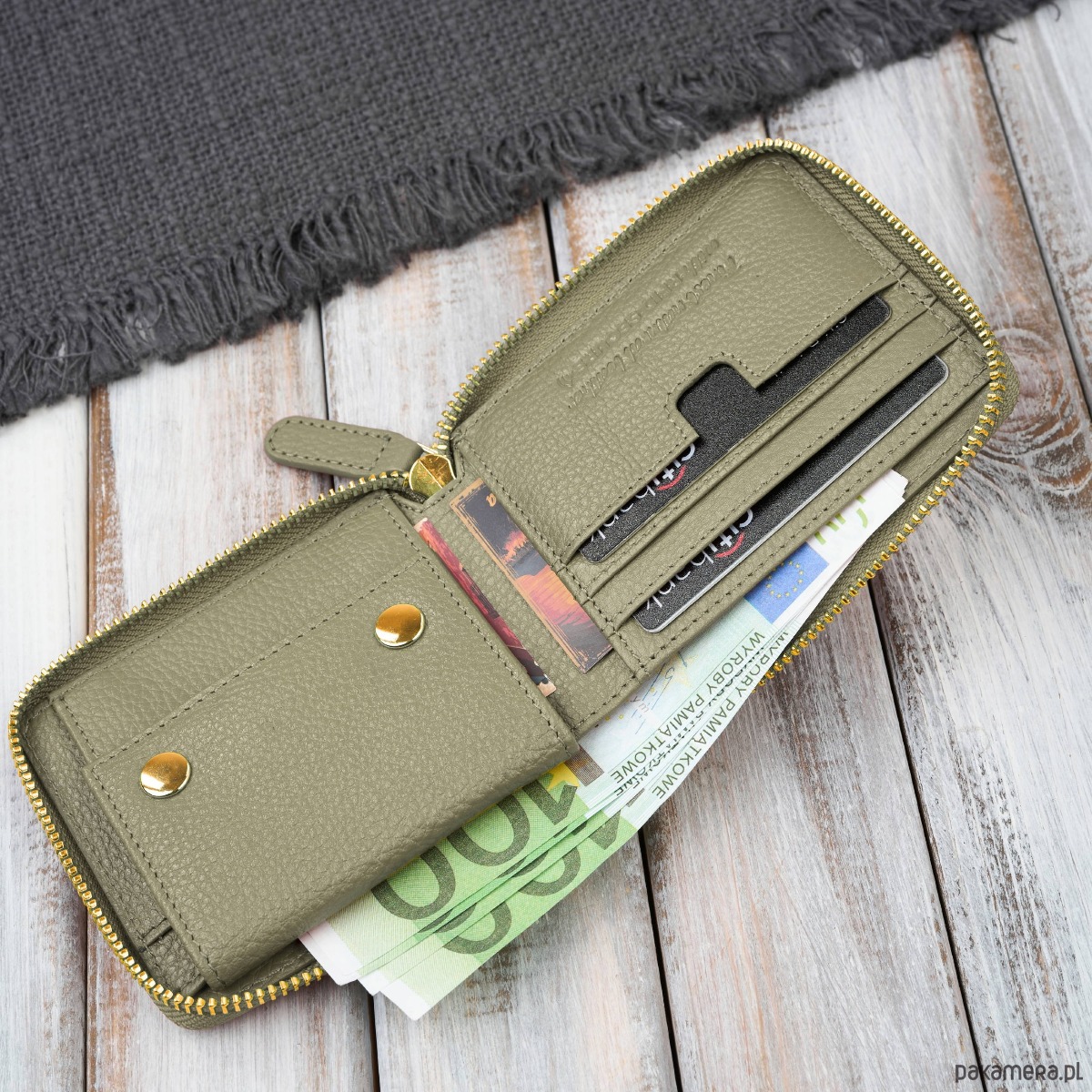 - Właściwości: RFID protection, z kieszenią na monety, kompaktowy