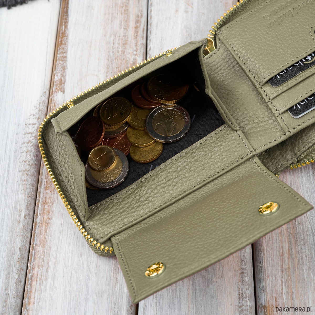 Portfel damski skórzany Paolo Peruzzi KV-04-GR – mały, elegancki i niezwykle funkcjonalny