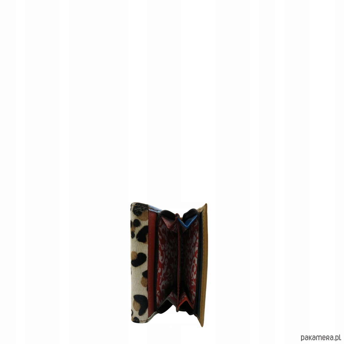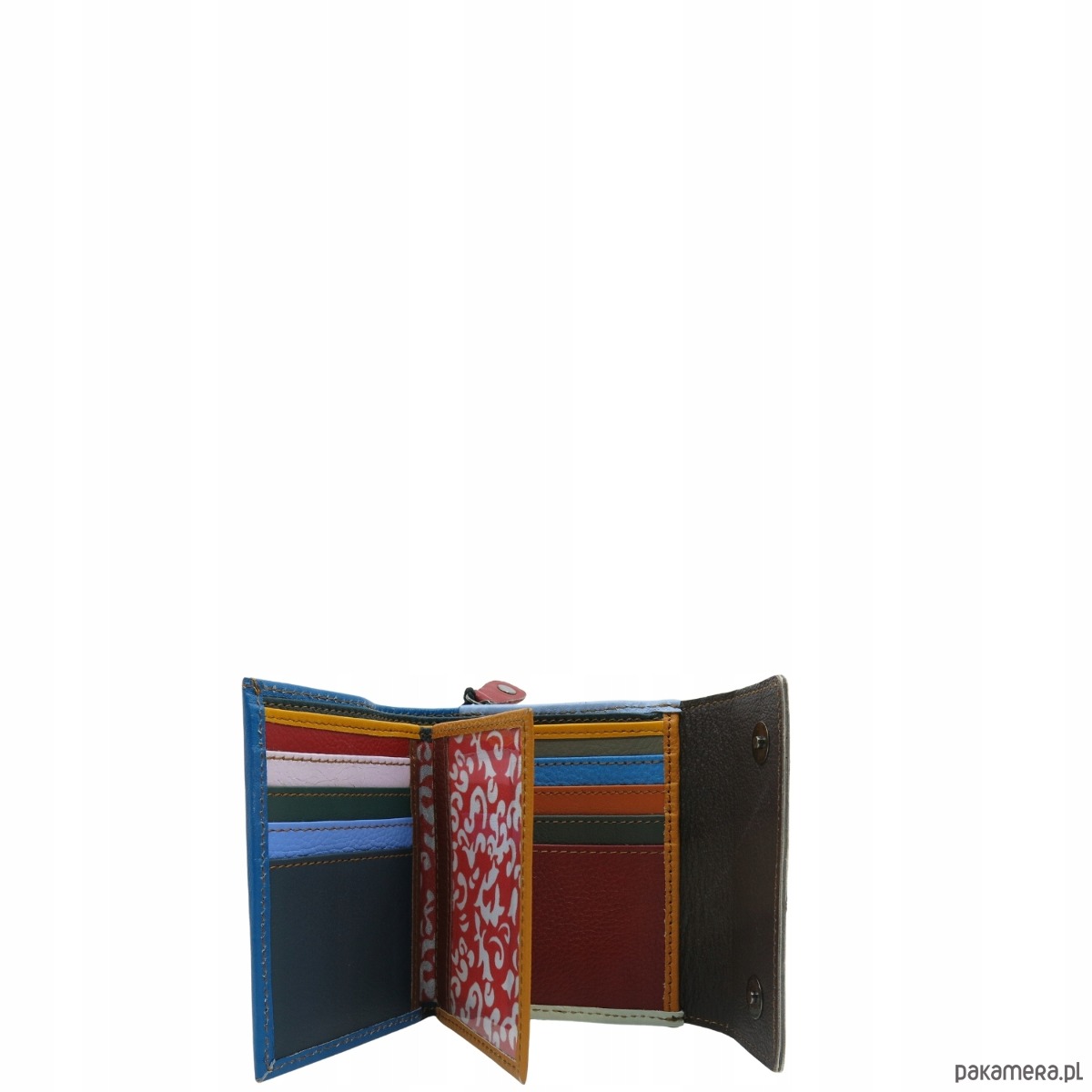 Średniej wielkości portfel wykonany ze skrawków skóry naturalnej. Jego unikalne połączenie kolorystyczne nadaje mu niepowtarzalny charakter, czyniąc go doskonałym dodatkiem. Spełni oczekiwania nawet najbardziej wymagających kobiet.