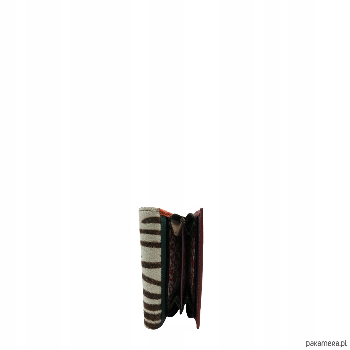 Średniej wielkości portfel wykonany ze skrawków skóry naturalnej. Jego unikalne połączenie kolorystyczne nadaje mu niepowtarzalny charakter, czyniąc go doskonałym dodatkiem. Spełni oczekiwania nawet najbardziej wymagających kobiet.