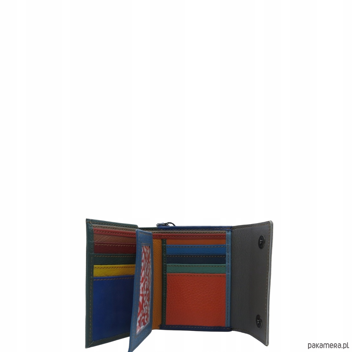Średniej wielkości portfel wykonany ze skrawków skóry naturalnej. Jego unikalne połączenie kolorystyczne nadaje mu niepowtarzalny charakter, czyniąc go doskonałym dodatkiem. Spełni oczekiwania nawet najbardziej wymagających kobiet.