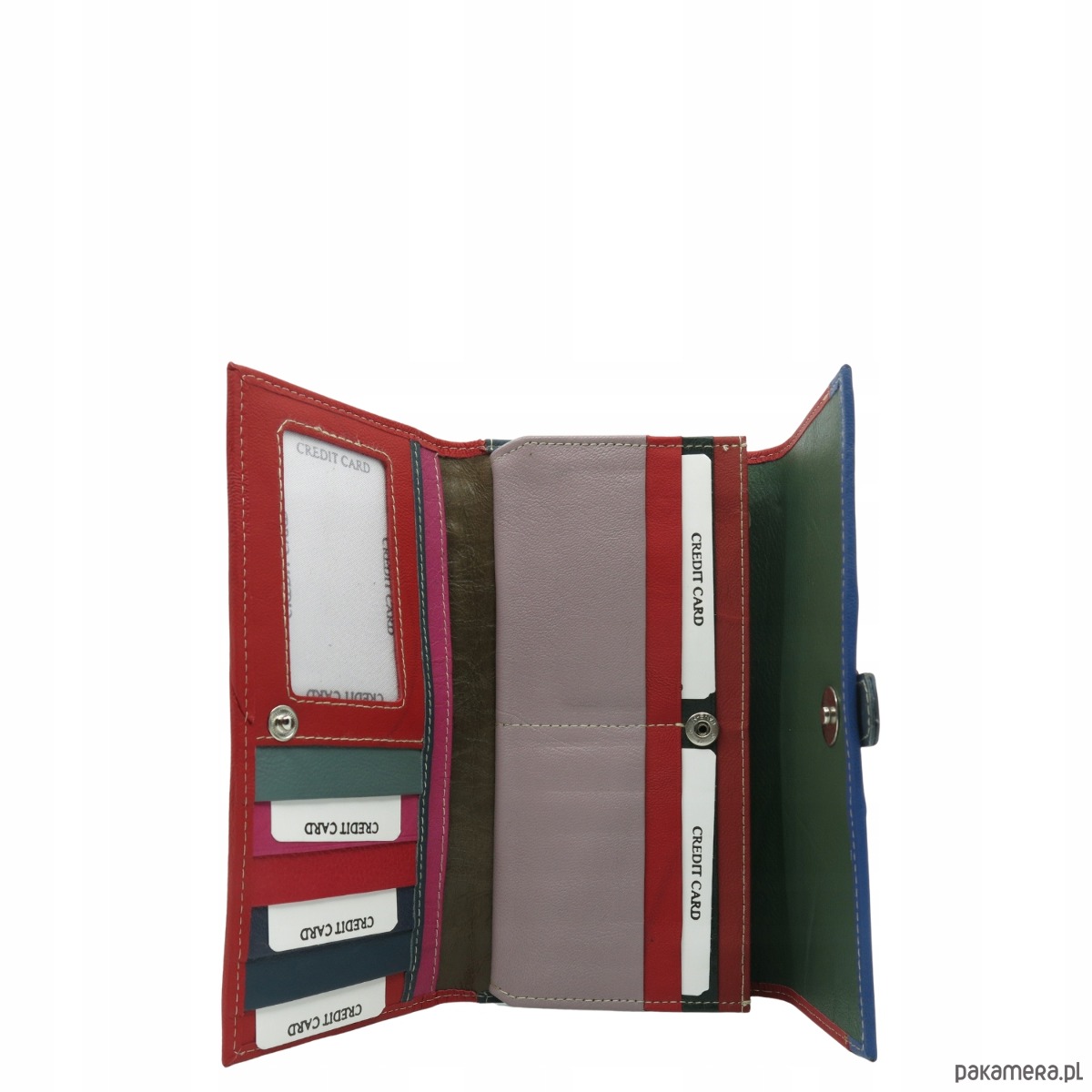 Średniej wielkości portfel wykonany ze skrawków skóry naturalnej, który spełni oczekiwania nawet najbardziej wymagających kobiet. Wnętrze portfela jest starannie zaprojektowane - składa się z dwóch głównych sekcji, które pomieszczą wszystkie niezbędne akcesoria. Pierwsza sekcja zawiera miejsce na karty, wizytówki oraz zdjęcie, natomiast w drugiej znajdują się dwie otwarte przegrody idealne na banknoty. Dodatkowo, portfel wyposażony jest w zamykaną na zamek przegrodę, doskonałą do przechowywania monet.