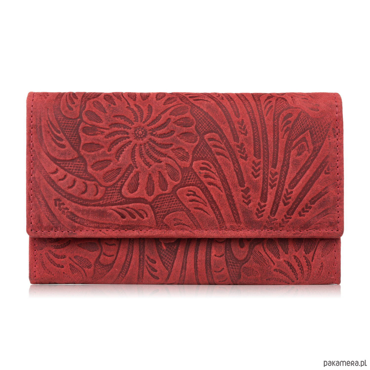 PORTFEL DAMSKI SKÓRZANY VINTAGE W KWIATY CZERWONY DUŻY RFID T-108-HRD